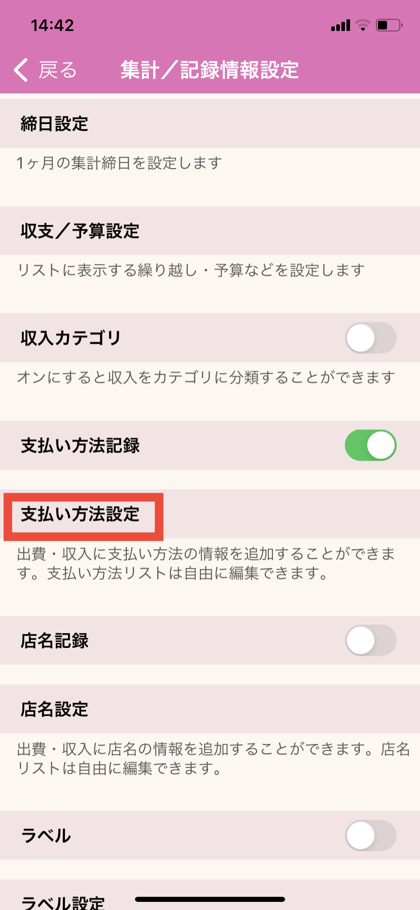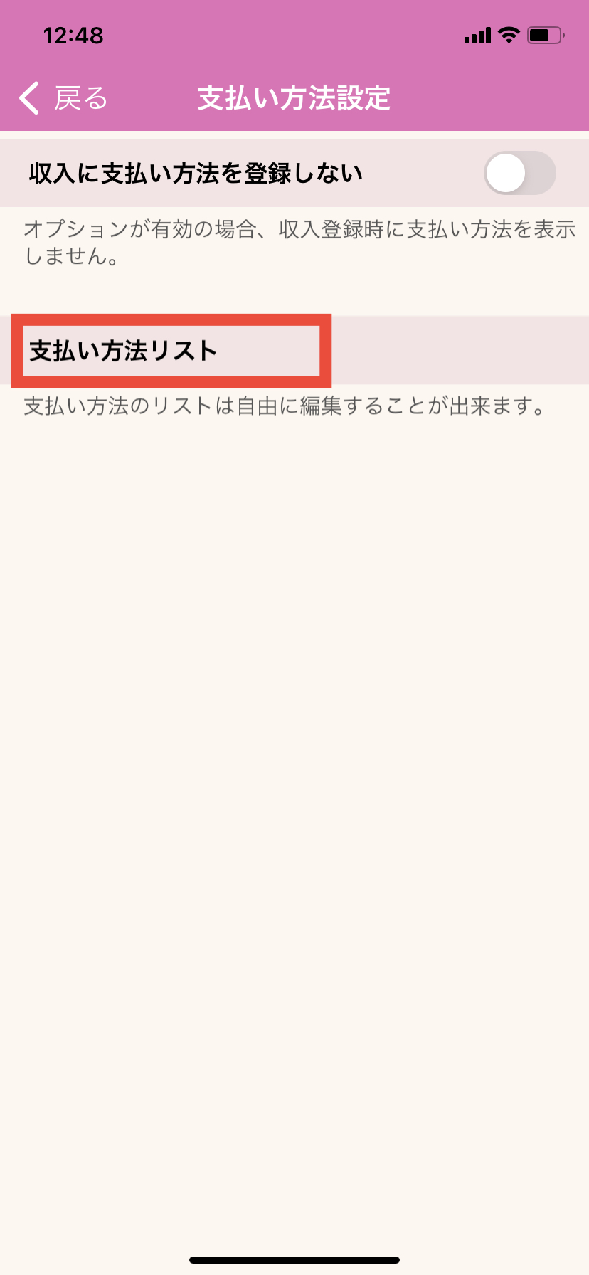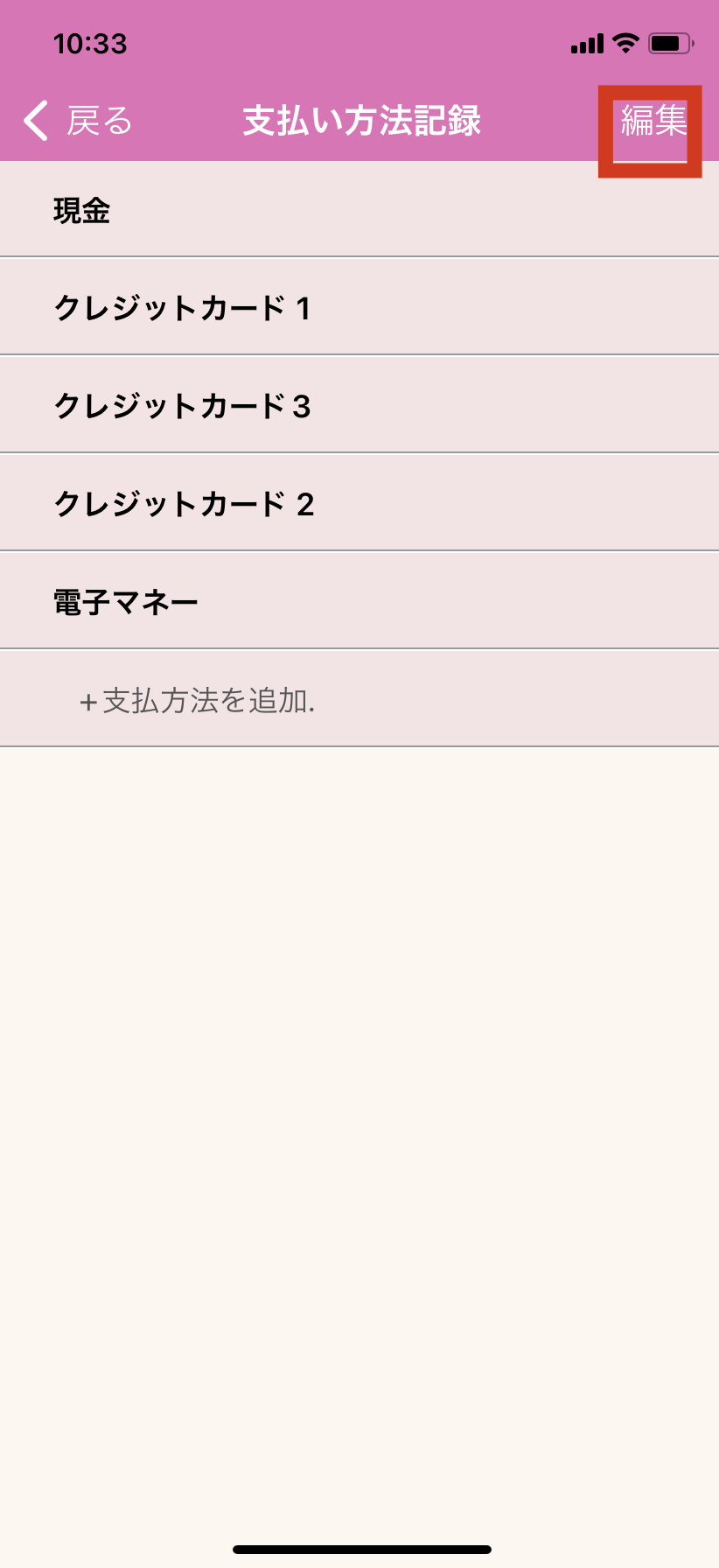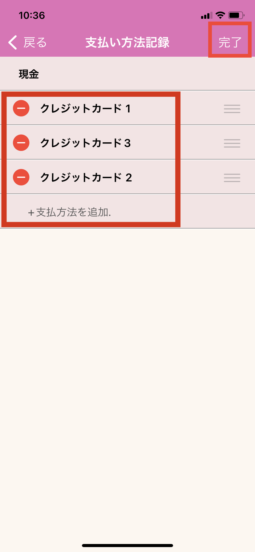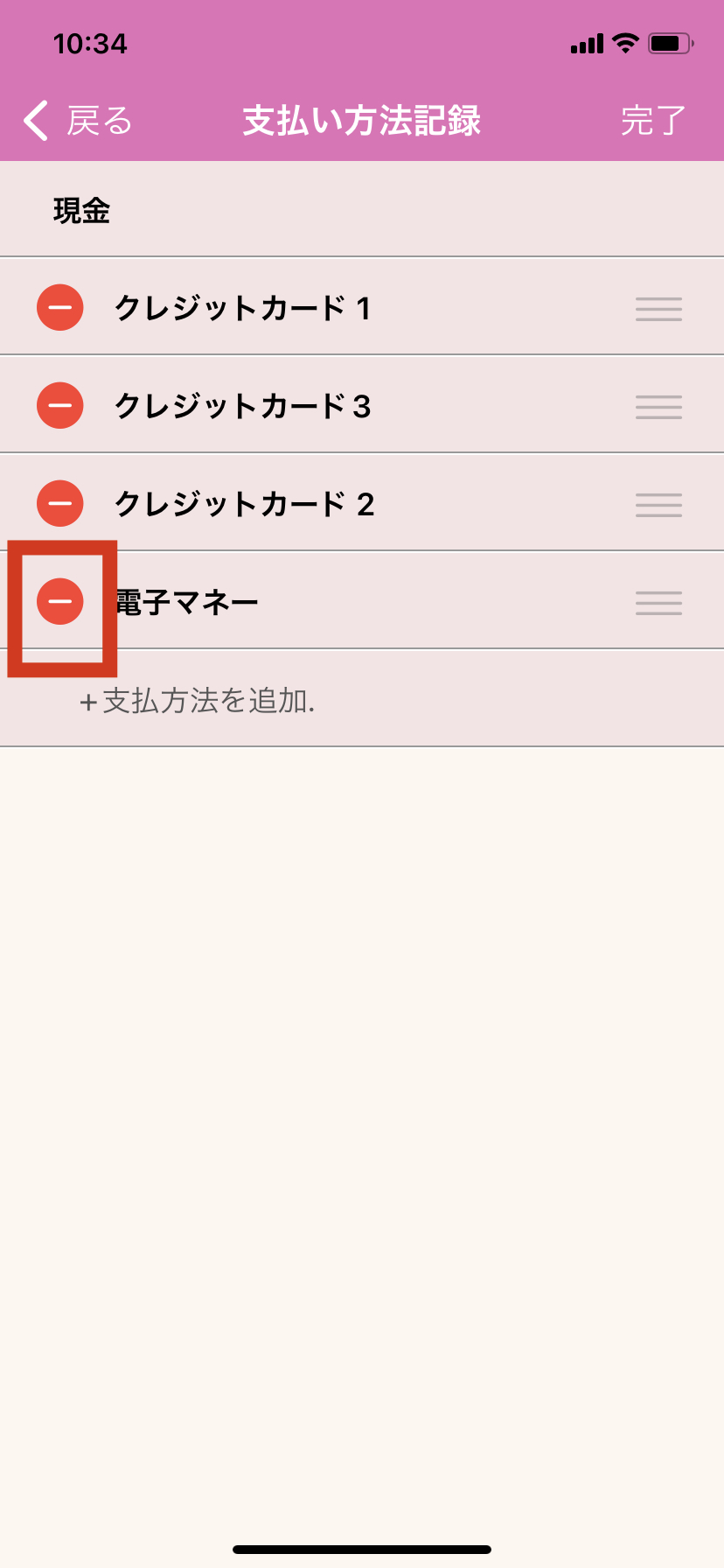 ※支払い方法を削除すると、該当の支払い方法で過去に記録した出費/収入の支払い方法名が”?”に変更されます。予め別の支払い方法への変更をおすすめします。