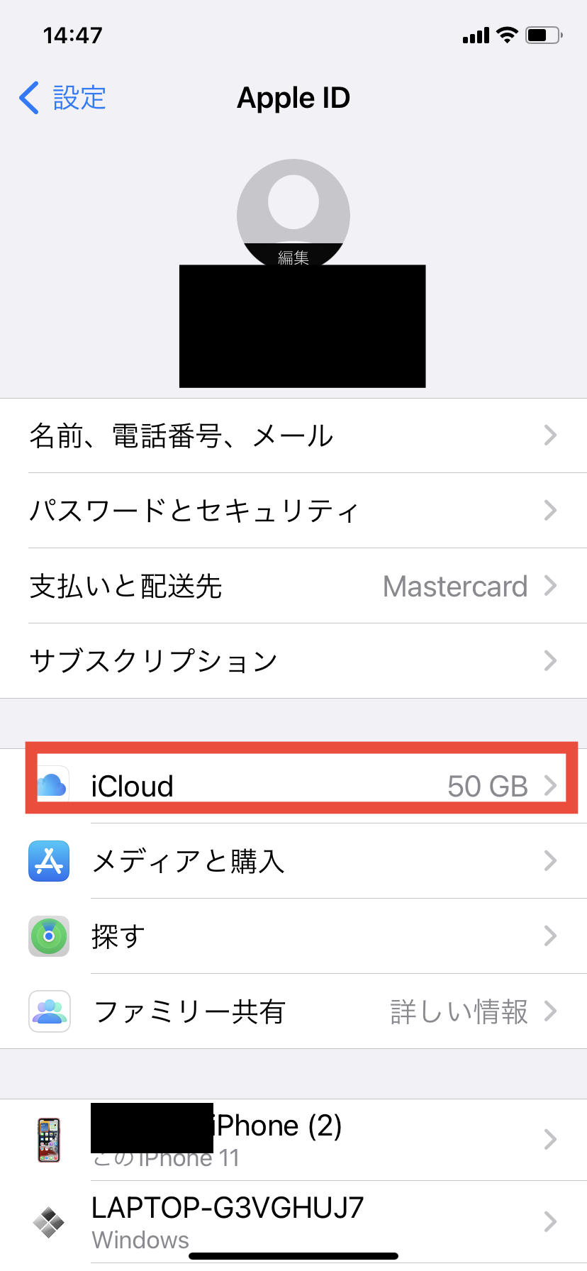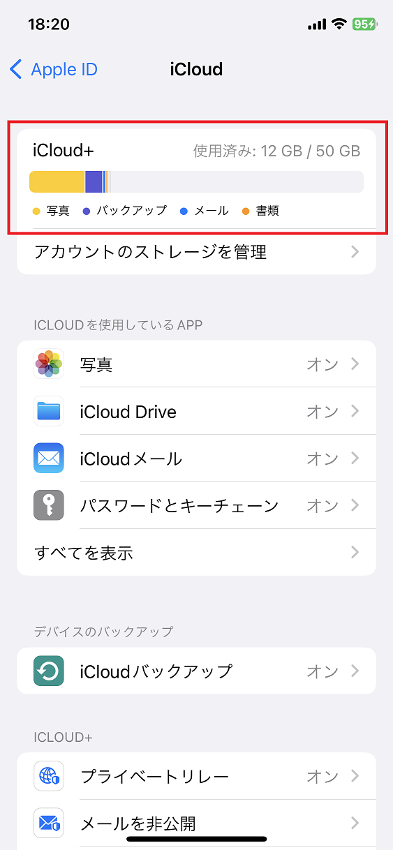 4. iCloudの容量をご確認ください。残容量が少ない場合バックアップデータを保存出来ない場合があります。