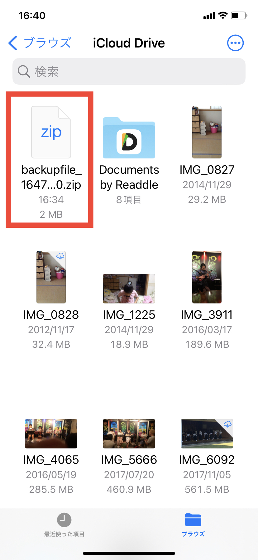 【iCloud Driveでのバックアップデータ復元方法(機種変更後の端末での操作)】