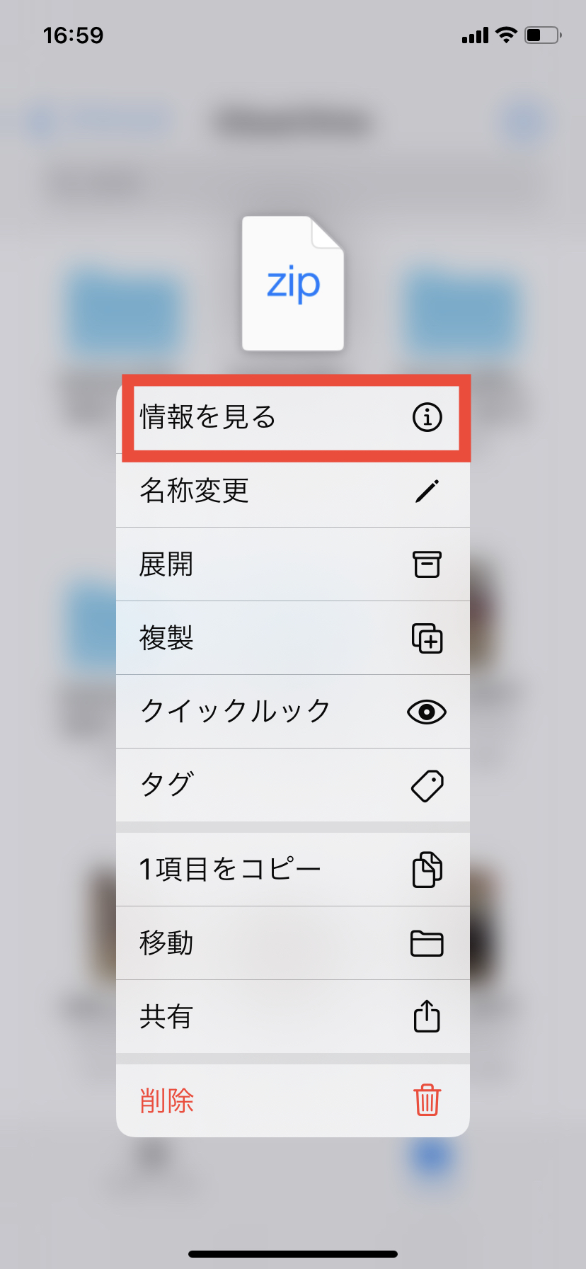 3.長押ししていただくと、下に項目が表示されます。「情報を見る」を押していただくと、バックアップ保存日時をご確認いただけます。