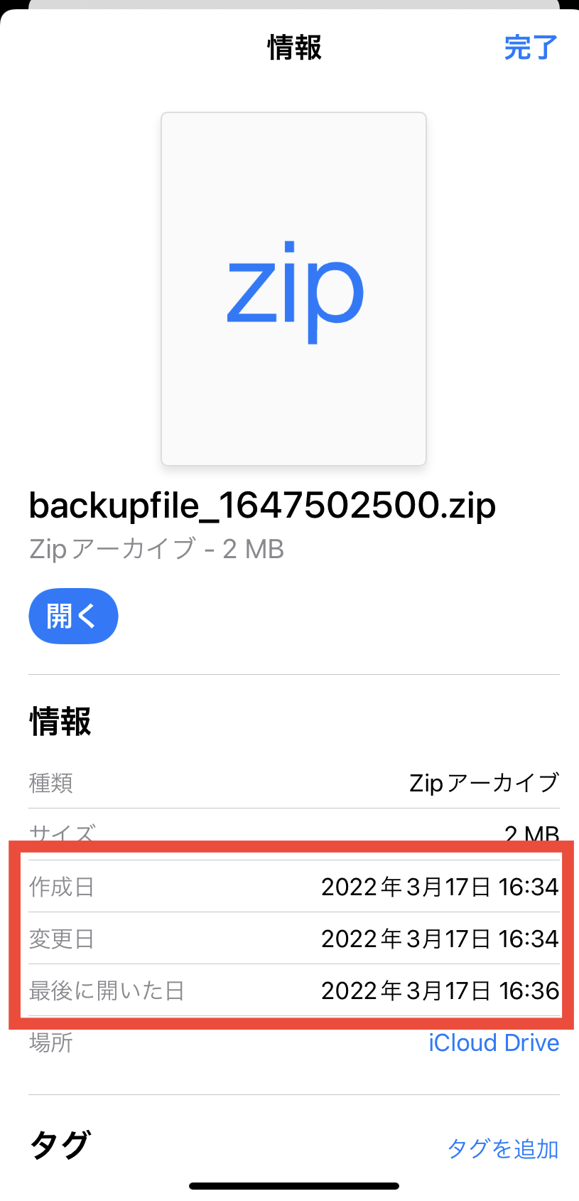 バックアップデータの復元は『上書き復元』となります。バックアップデータと現在のアプリに差分がある場合、差分のデータは消失しますのでご注意ください。誤って空のZipファイルを復元した場合は現在のデータも全て消えてしまいますのでご注意ください。