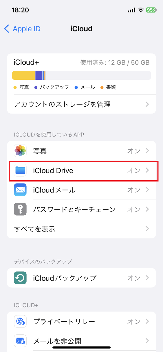 5. 下方へスクロールし、「iCloud Drive」を確認してください。オフの場合はオンにご変更ください。