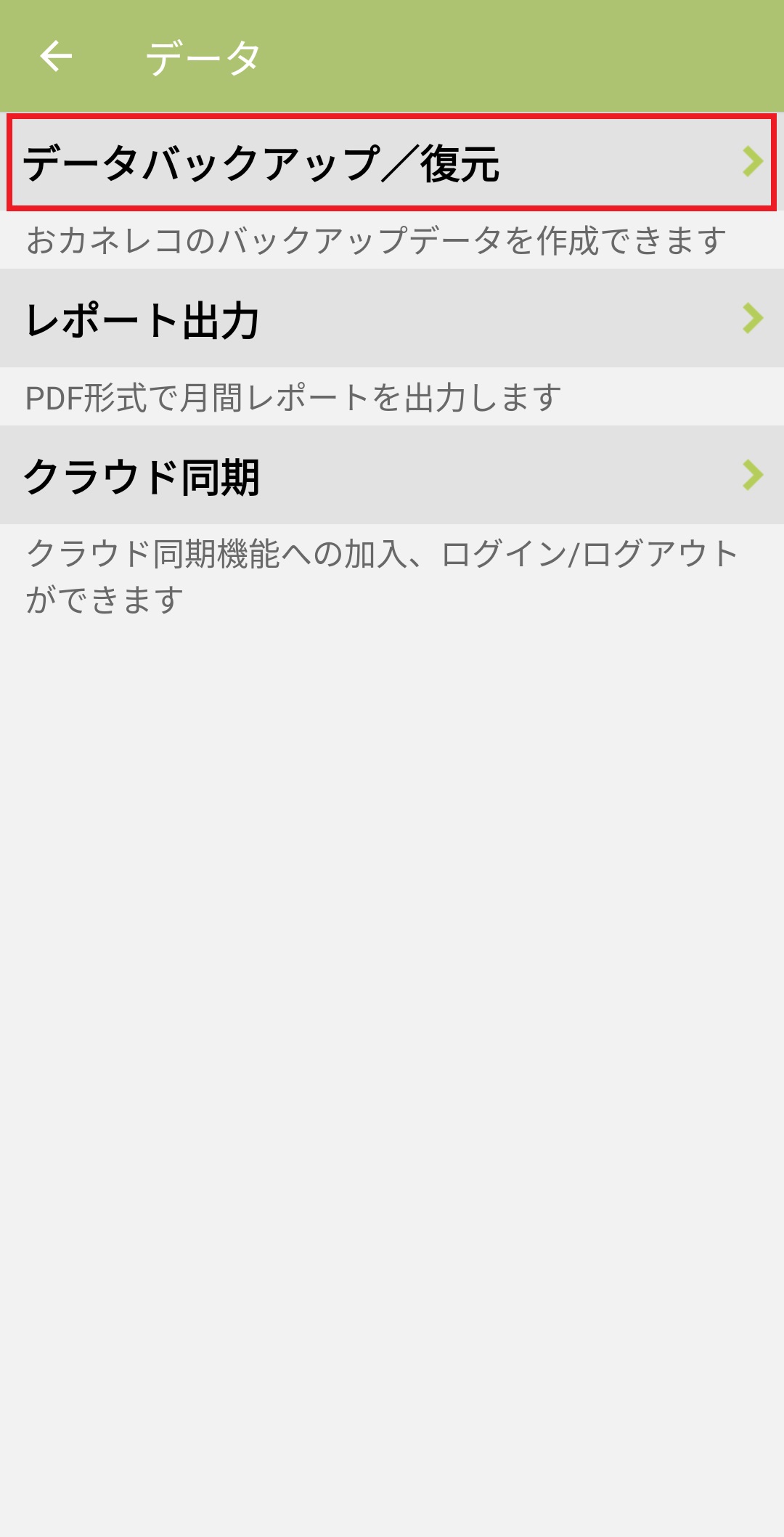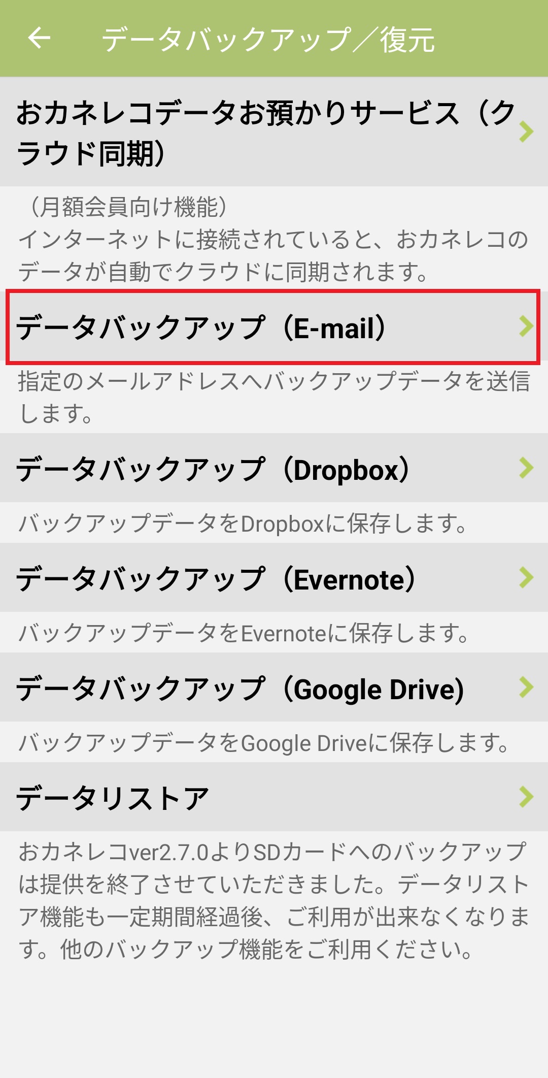 ★Android版おカネレコ(無料版)でバックアップデータを送信する場合