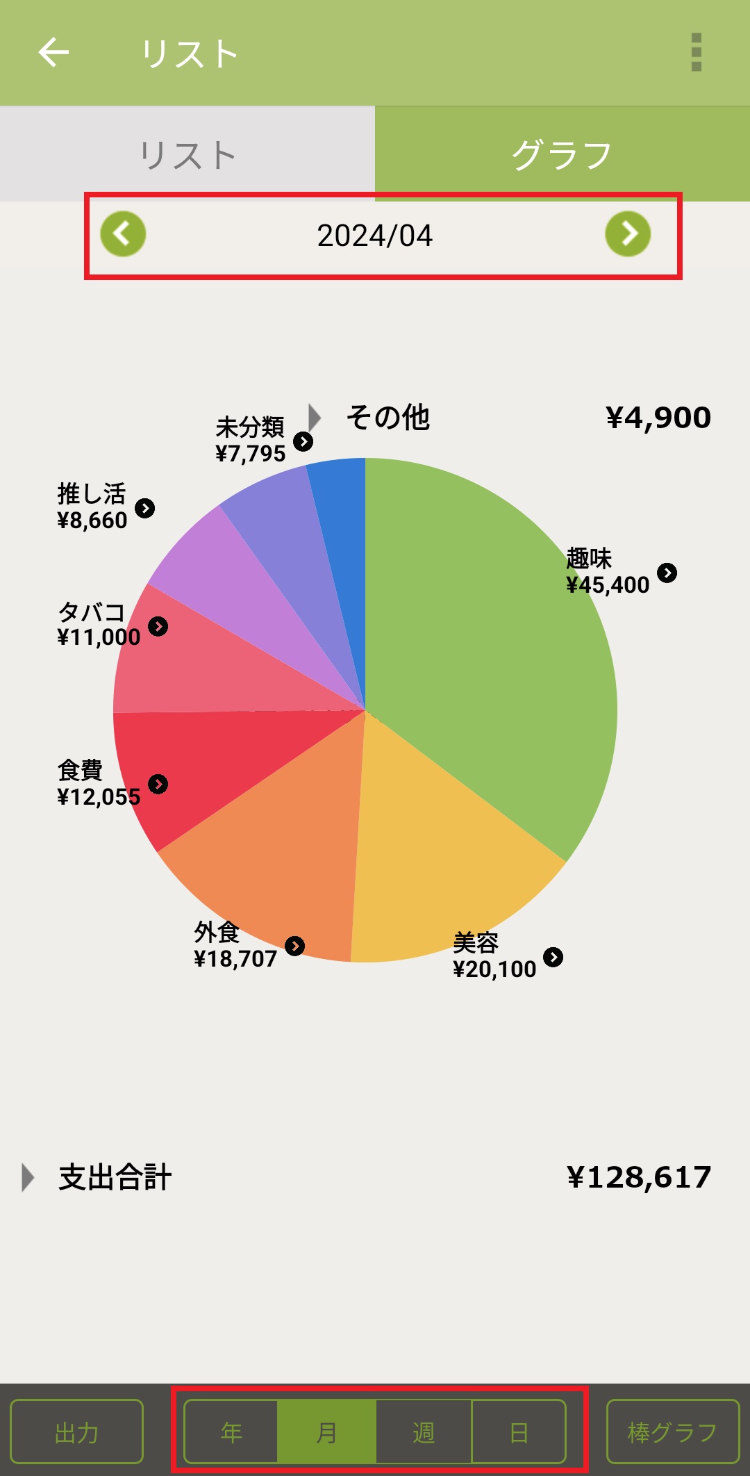 ※画面下部で「年」「週」「日」にも切り替え可能です。