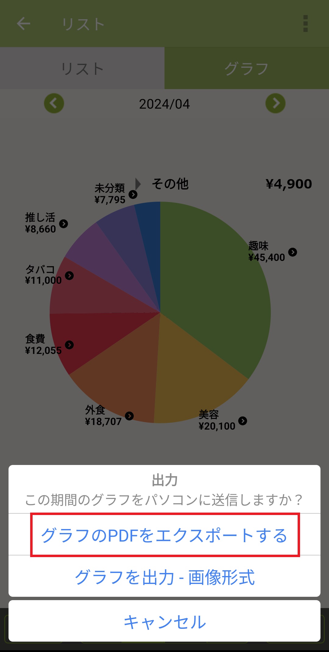 4. 「グラフのPDFをエクスポートする」を押します。