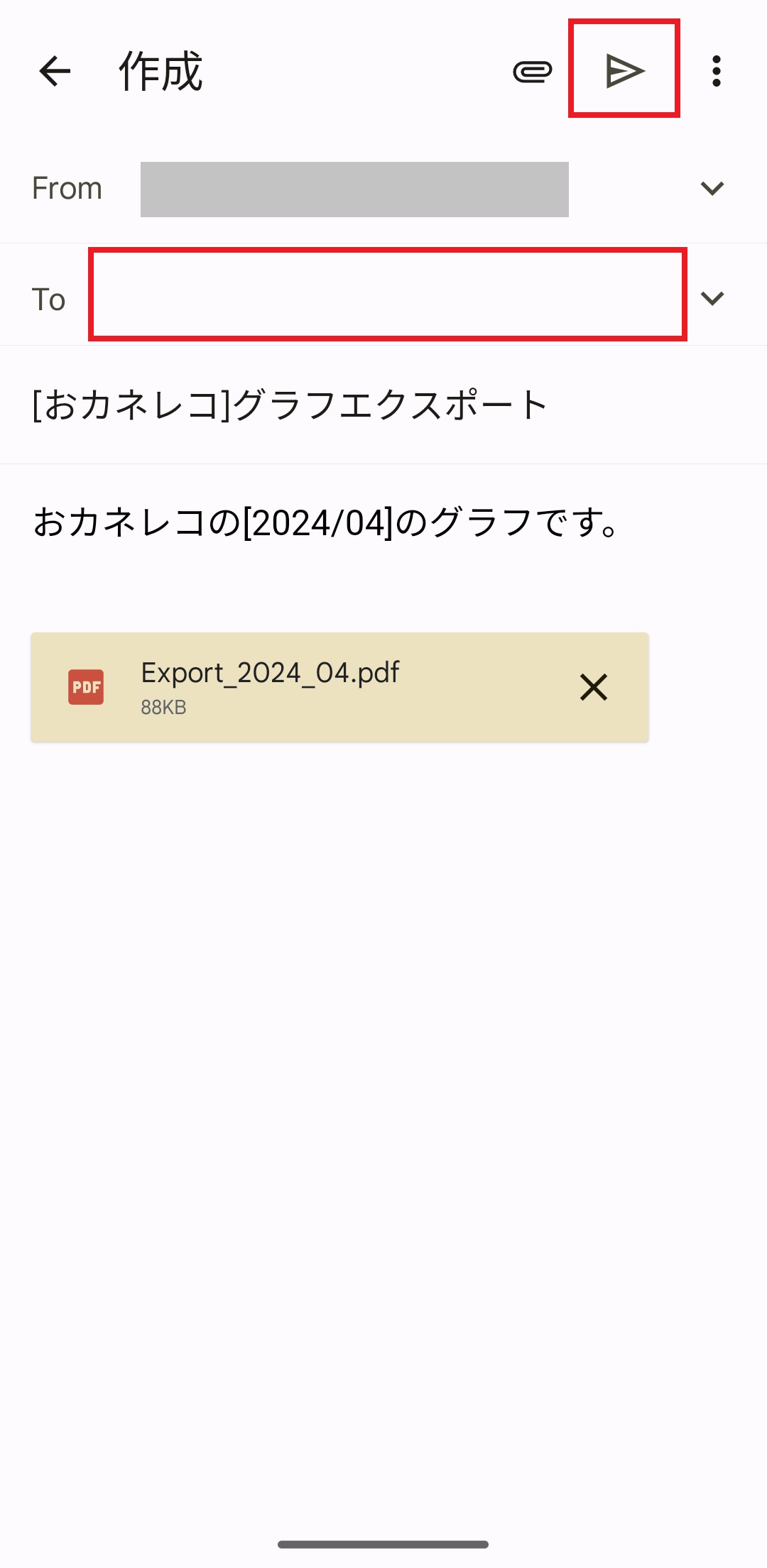 6. メールアプリが起動したら、PDFが添付されていることをご確認いただき、お客様のPCのアドレスへ送信してください。