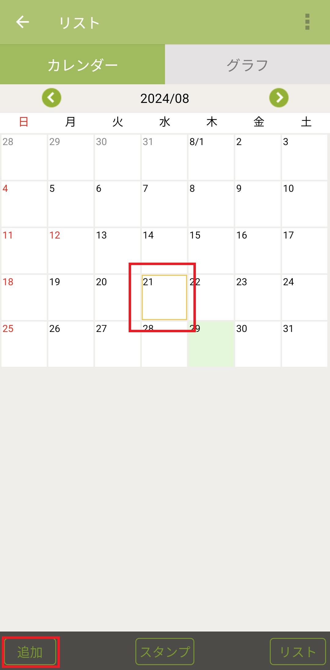 2.入力したい日付を選択し、画面左下の「追加」を押します。