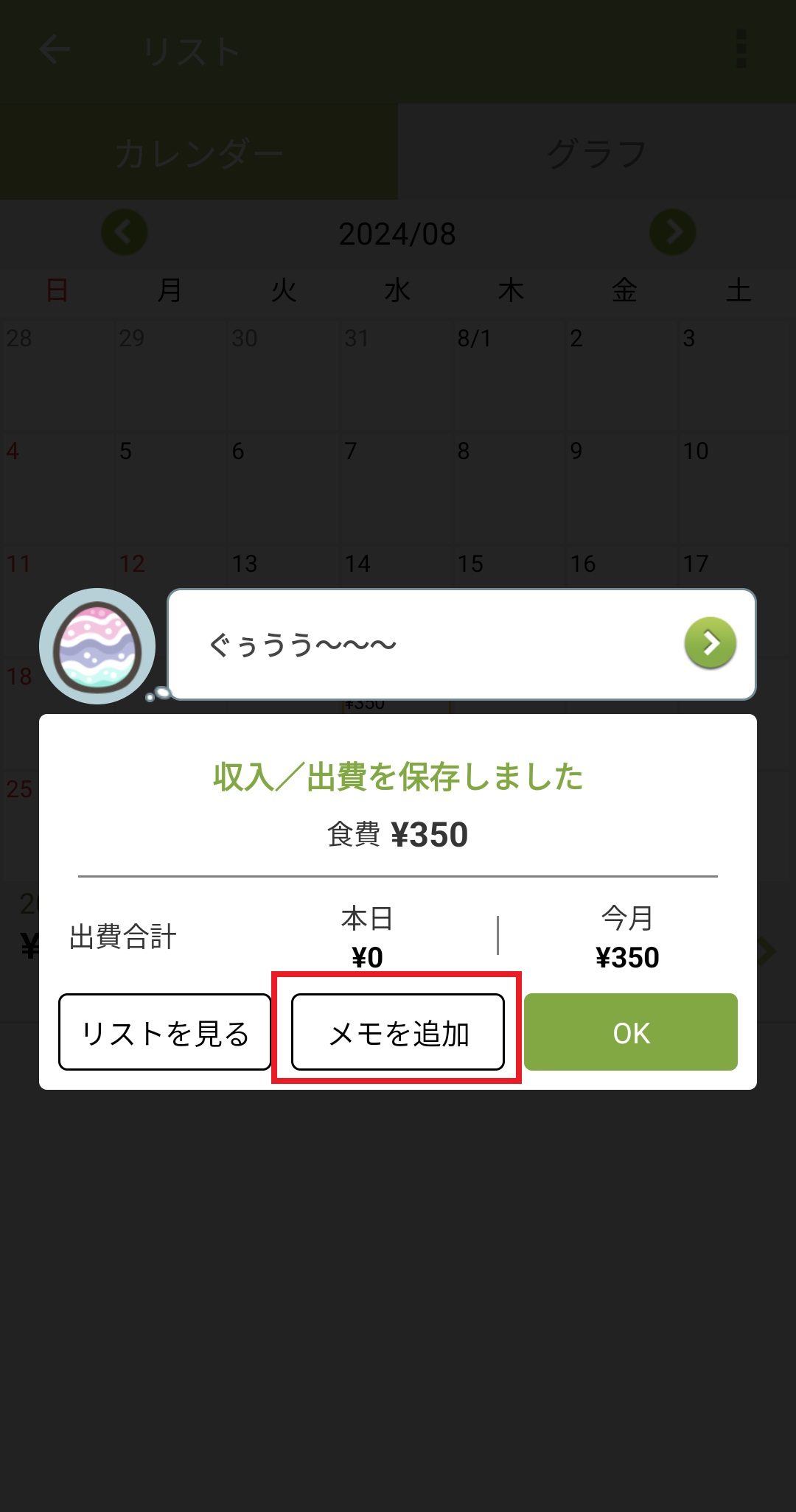 5.記録完了のポップアップ画面中央にある「メモを追加」を押してください。