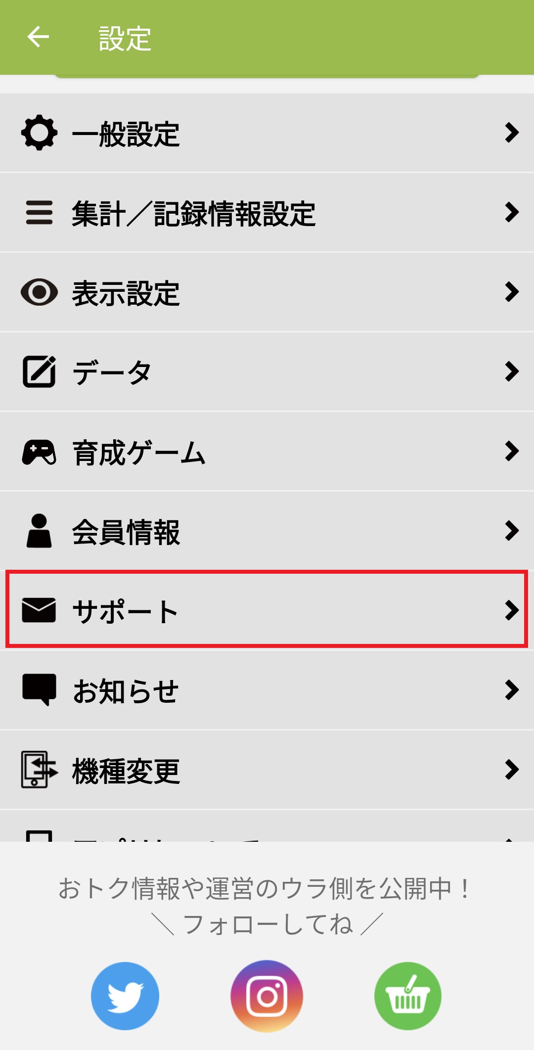 2. 「サポート」を押します。