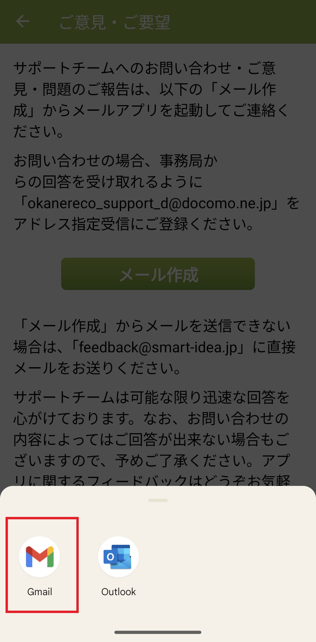 3. 「お問い合わせ・ご意見」を押します。