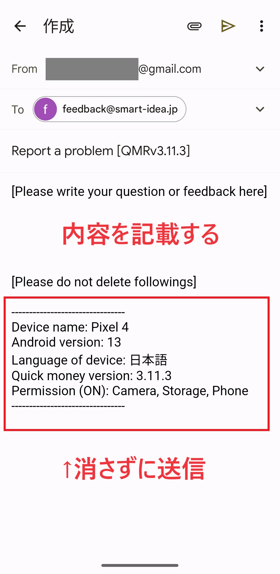 ※メール下部に記載されている情報は削除せずそのままお送りいただけますようお願いいたします。