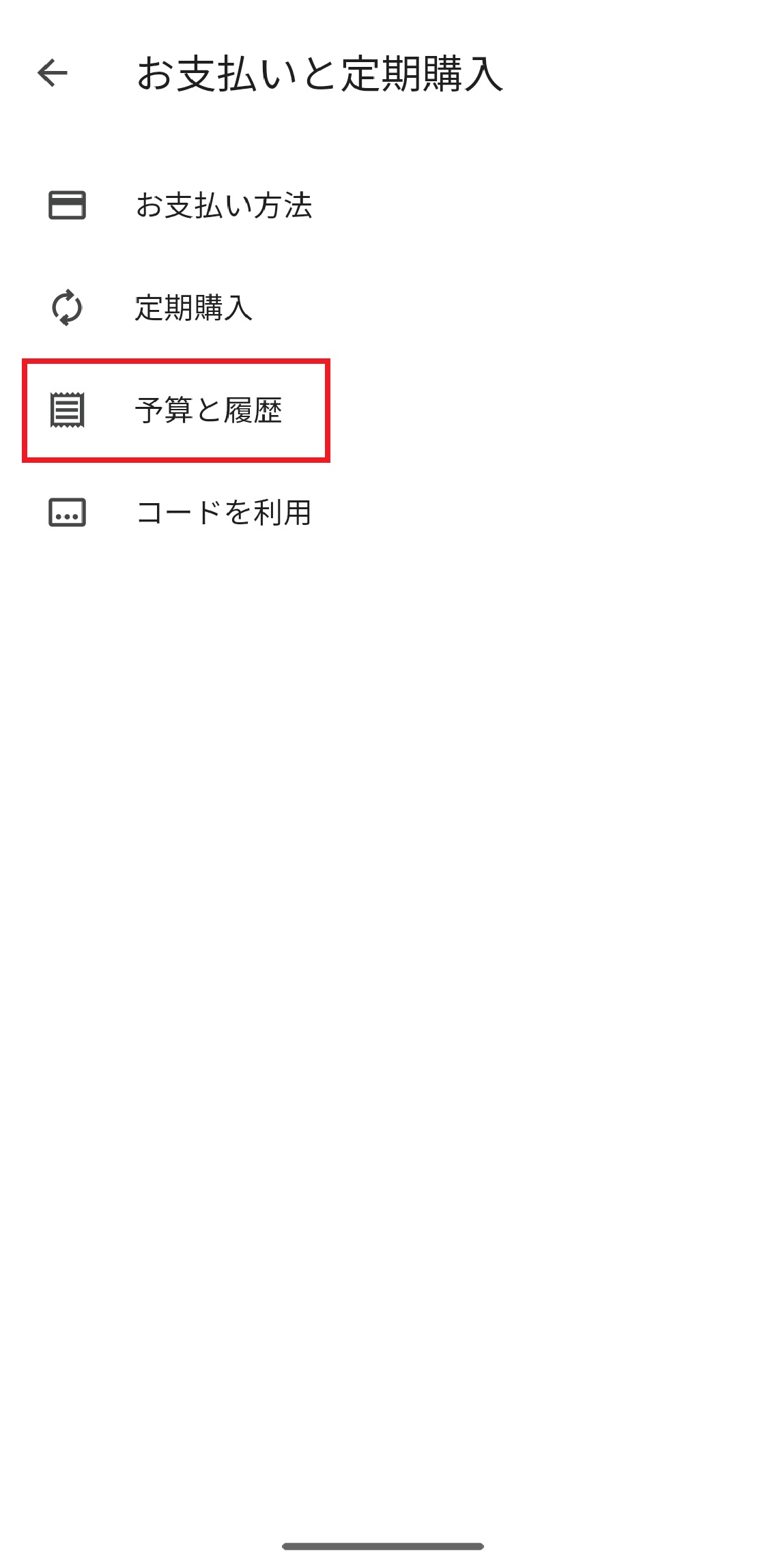 4.「予算と履歴」を押します。
