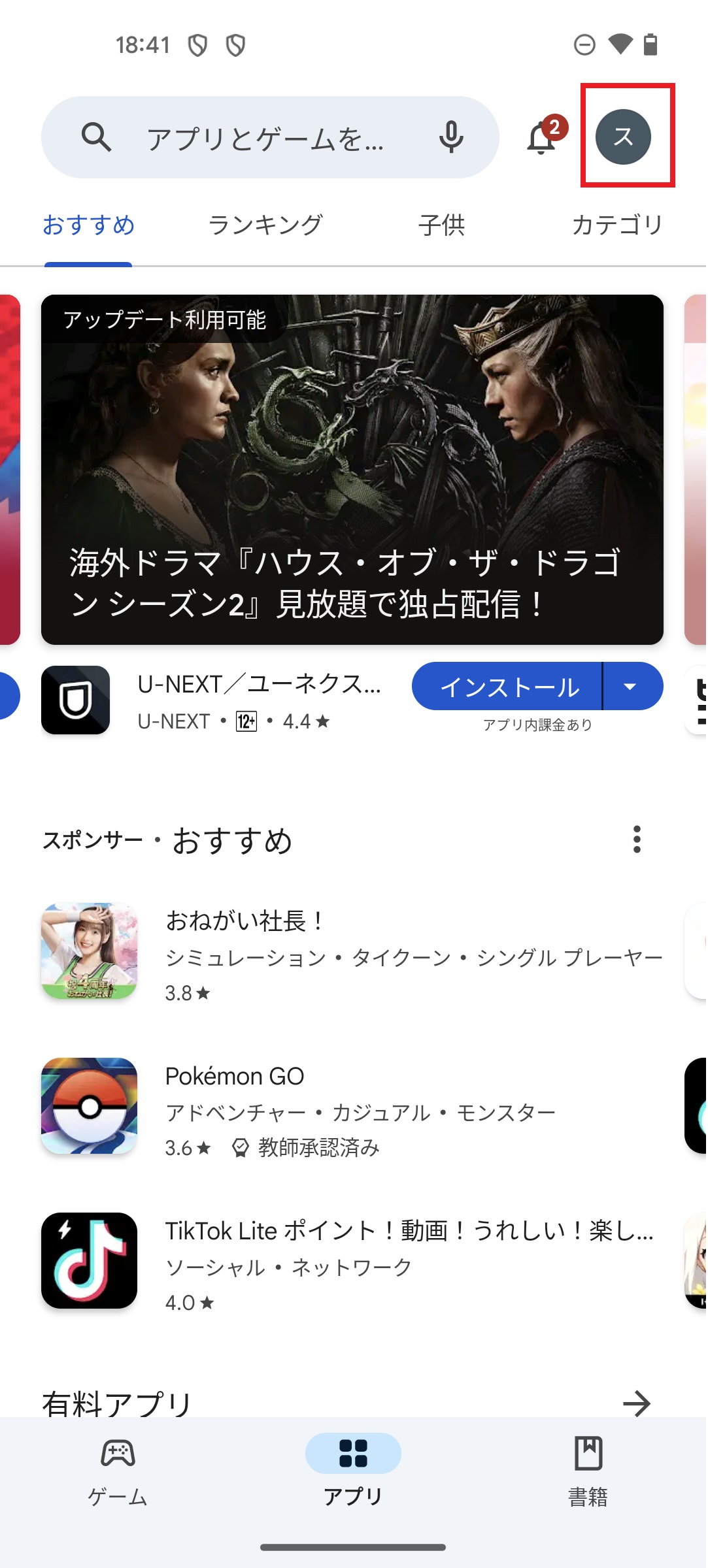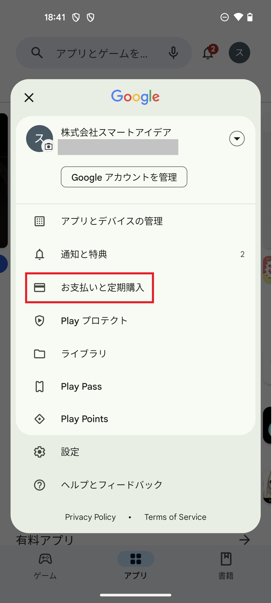 1. GooglePlayストアアプリを起動します。