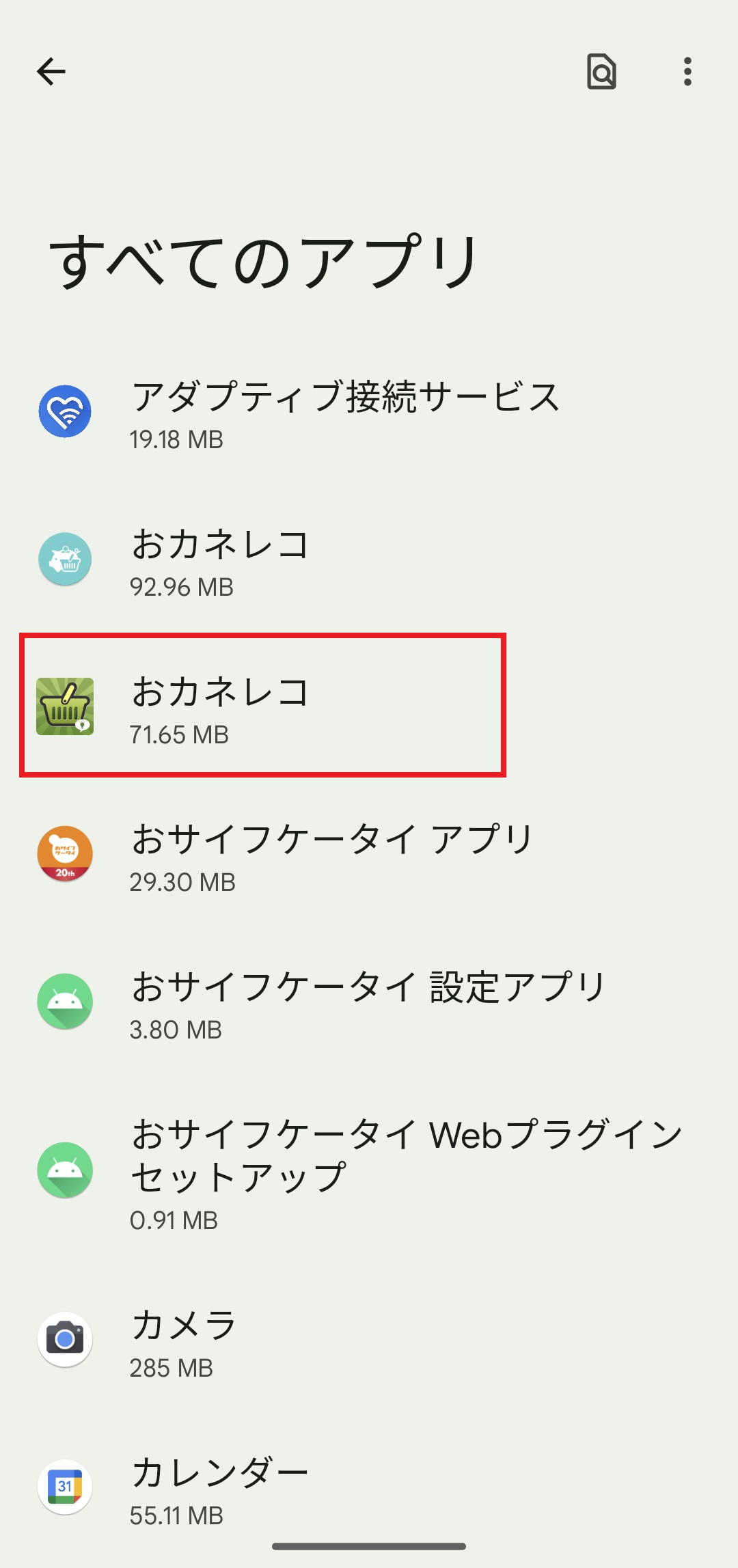 3. インストールされているアプリ一覧の中から「おカネレコ」を押します。