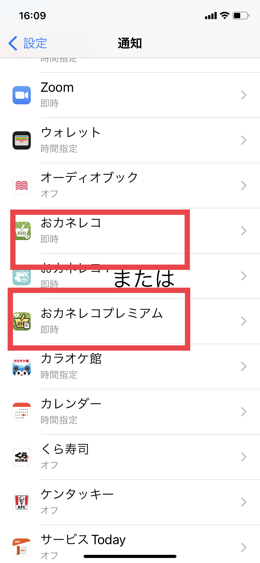 3. アプリ一覧から「おカネレコ」または「おカネレコプレミアム」を押します。