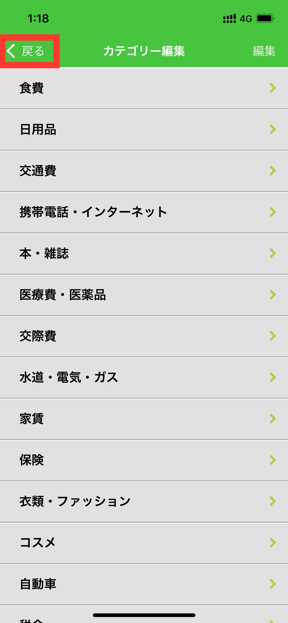 3. 右上の「編集」を押します。