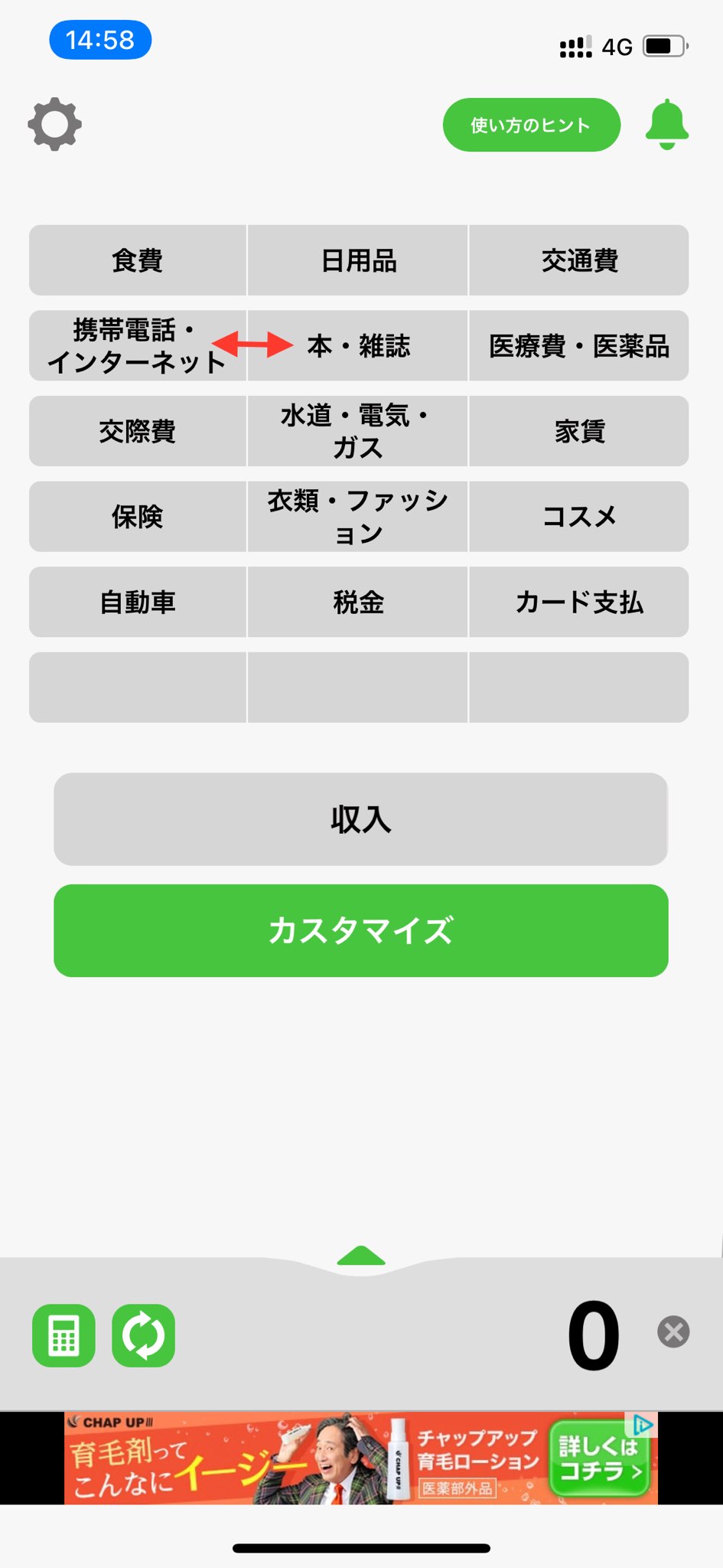 2. 「カスタマイズ」を押します。
