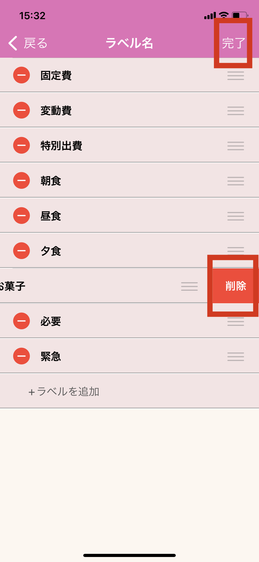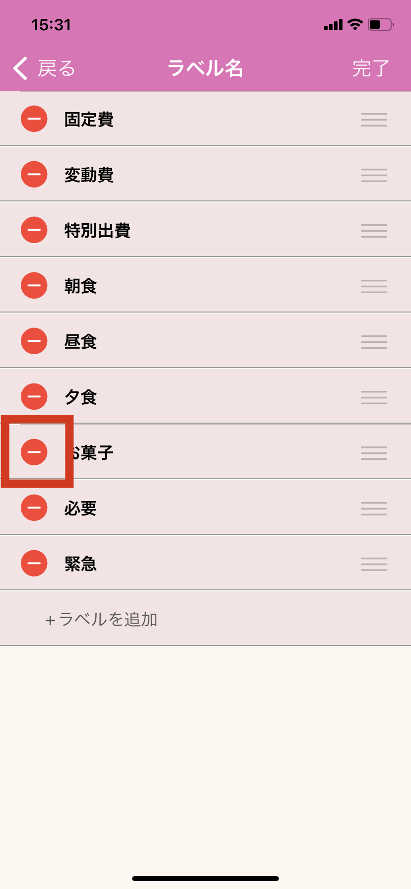 ラベルを削除する方法 機能をカスタマイズする 2021/06/21 【ラベルを削除する】 1. おカネレコを起動し、トップ画面上部の「歯車」ボタンを押します。 2. 「集計/記録情報設定」を押します。 3.「ラベル設定」を押します。 4.「ラベルリスト」を押します。 5. 右上の「編集」を押します。 6.削除したいラベルの左端にある削除ボタン(赤い丸に白い横線)を押します。 7.「削除」を押し、「完了」を押します。