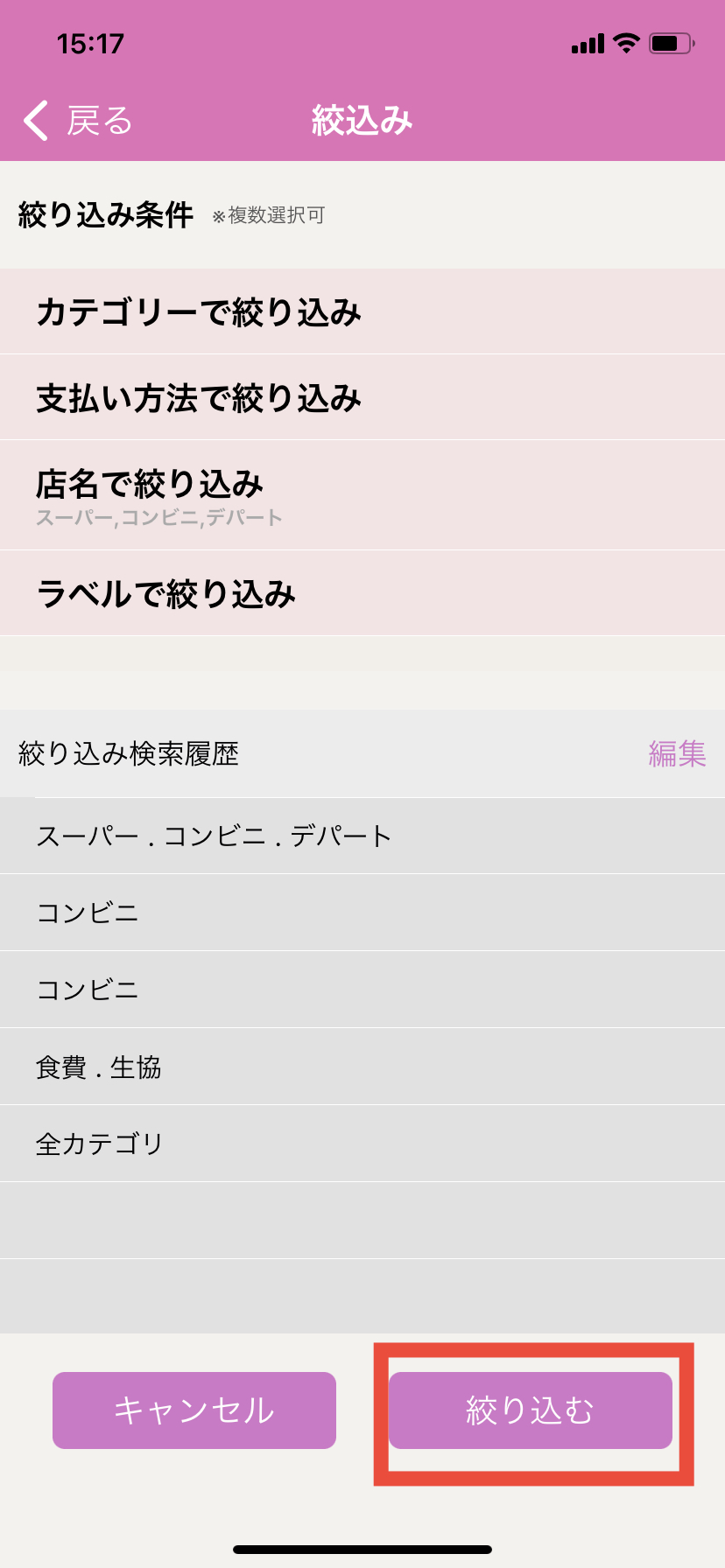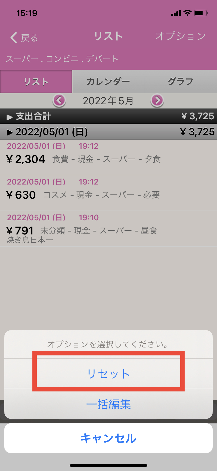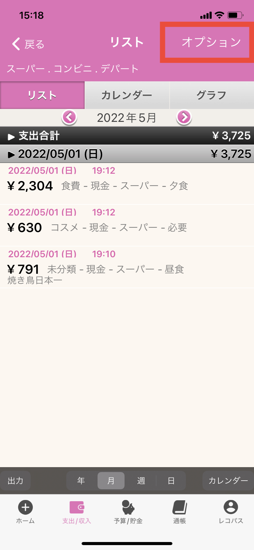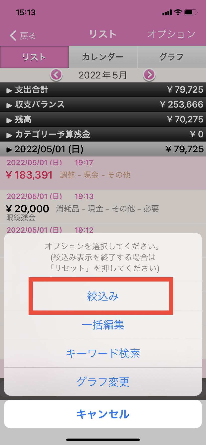 8.絞込みを解除したい場合は、再度右上の「オプション」を押します。