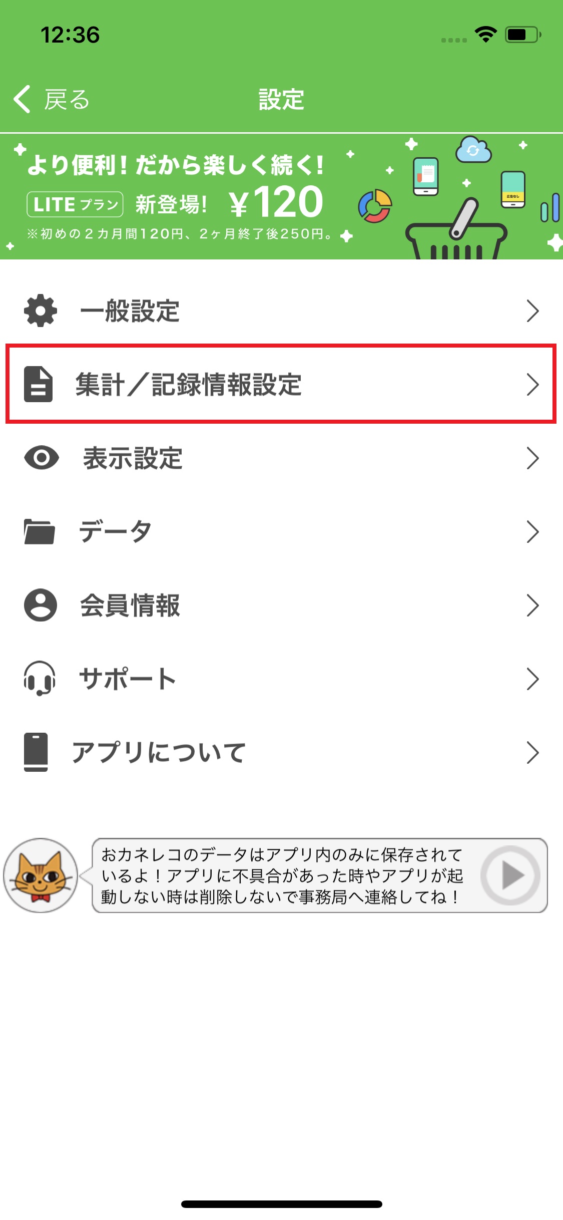2. 「集計/記録情報設定」を押します。