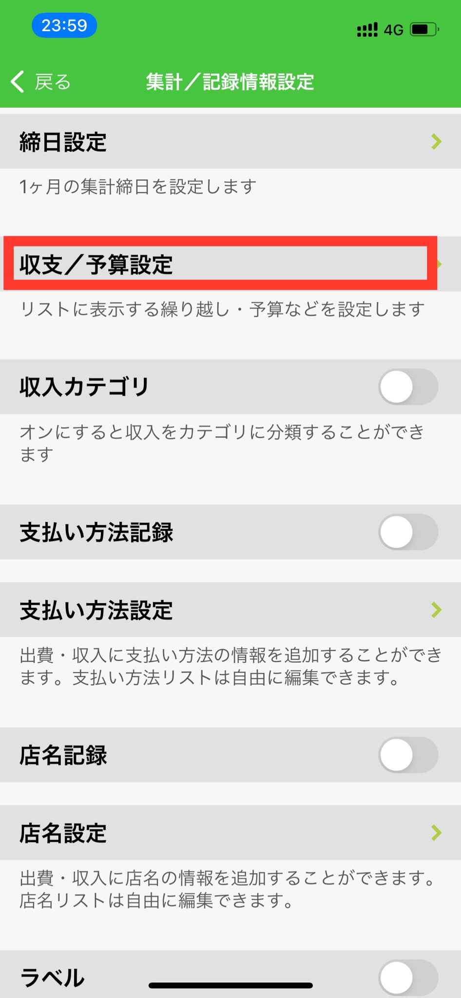 3. 「収支/予算設定」を押します。