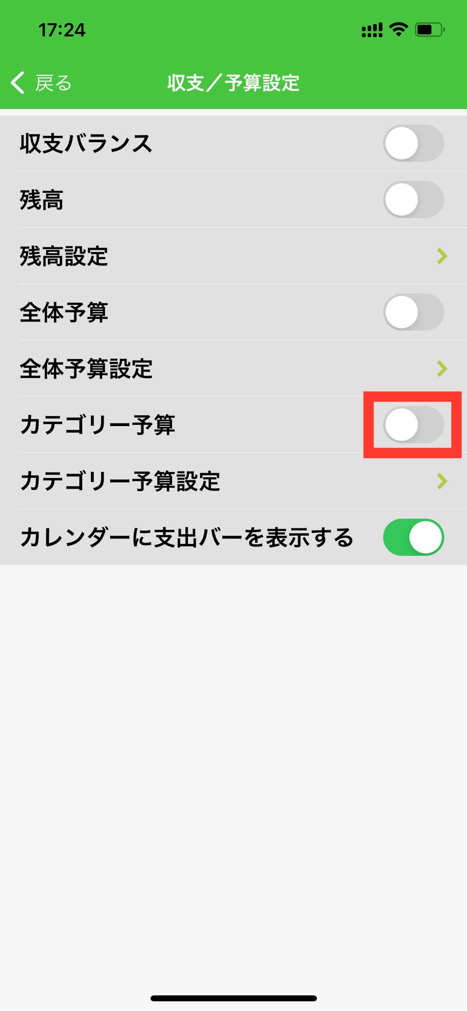 4.「カテゴリー予算」をオンにします。