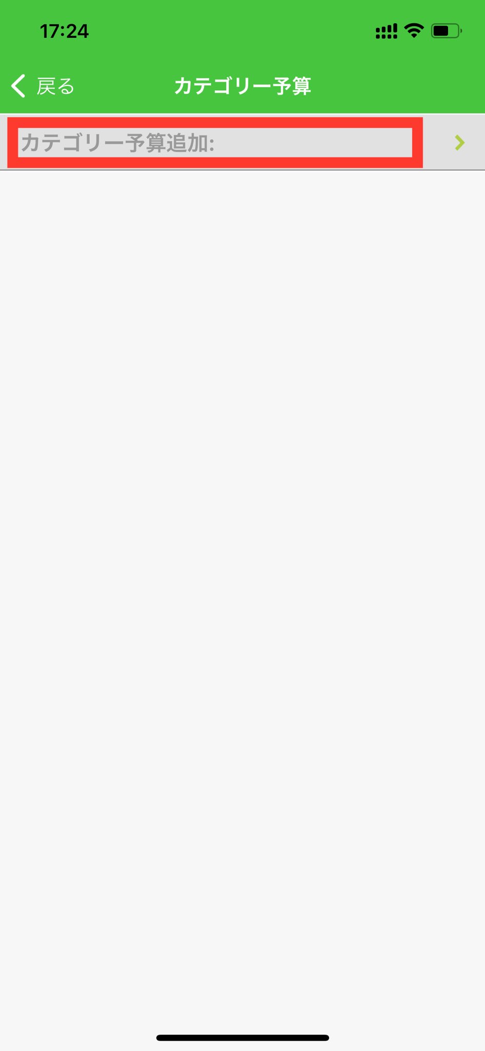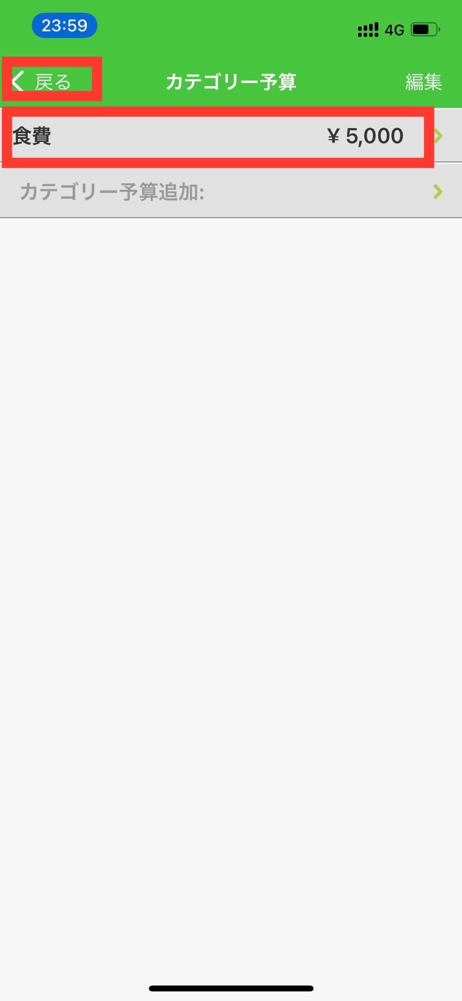 9.設定したカテゴリー予算が表示されます。「<戻る」を押し、リスト画面に戻ります。