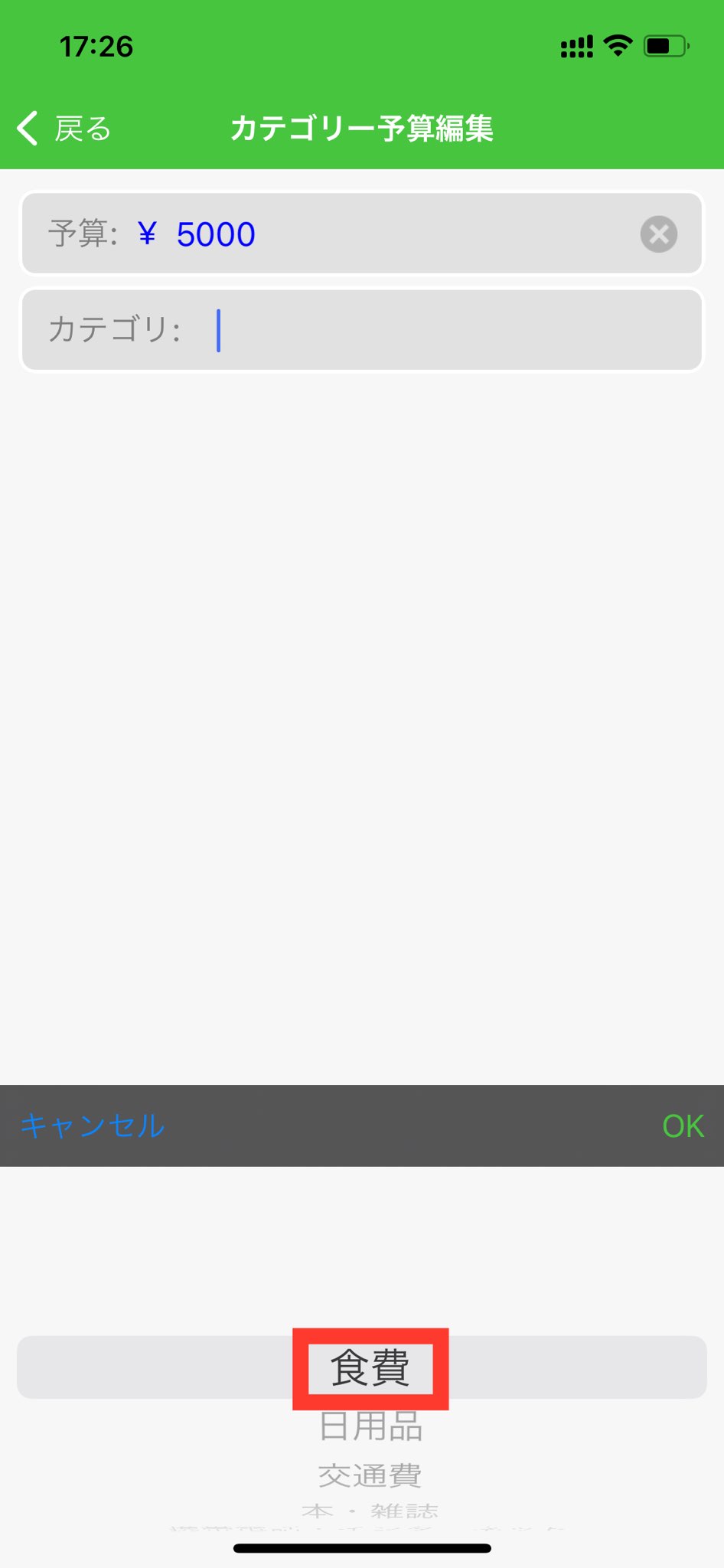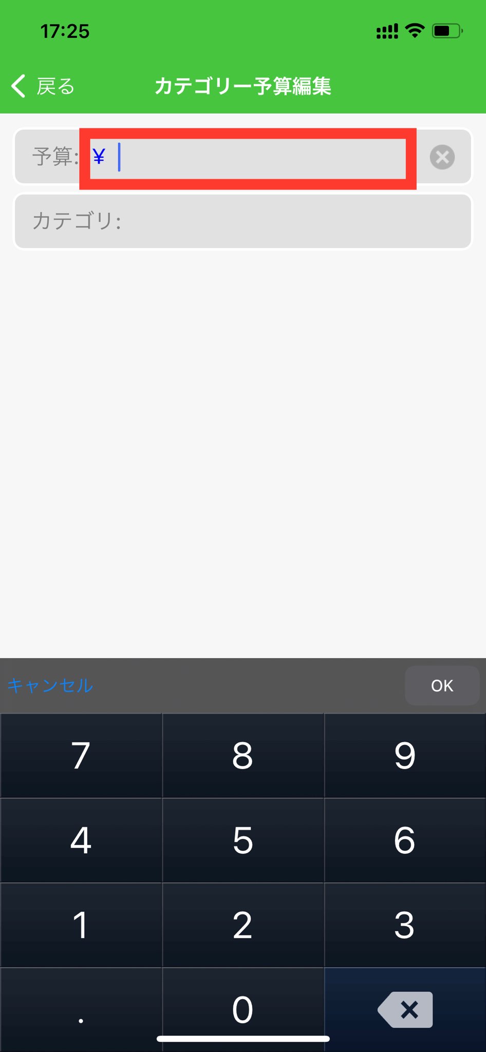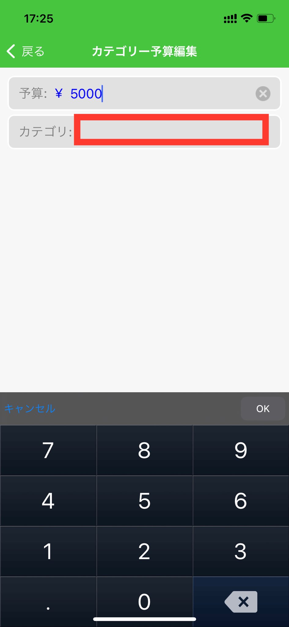 7.カテゴリー予算編集画面にて、予算金額を設定します。