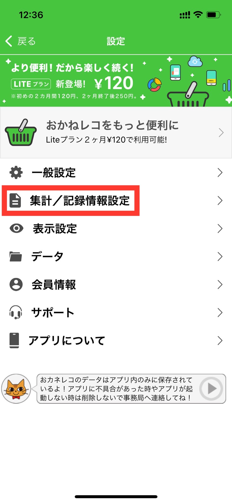 2.「集計/記録情報設定」を押します。