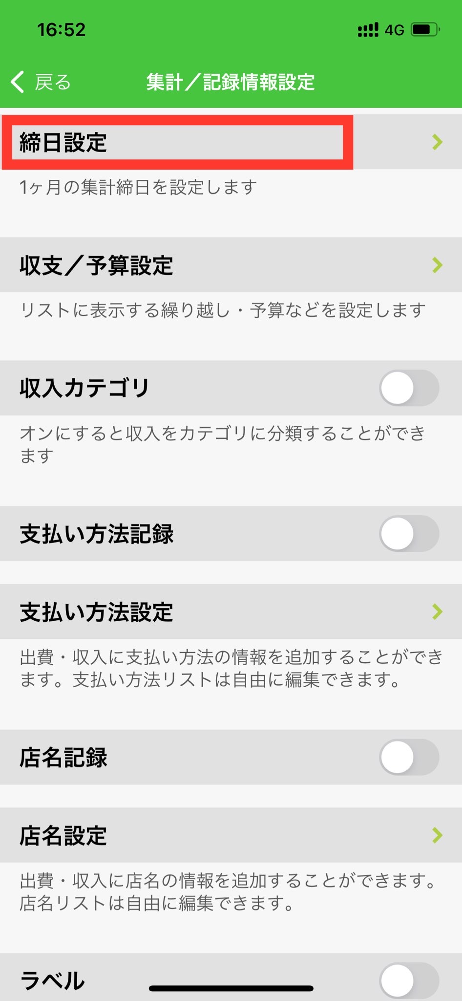 3.「締日設定」を押します。