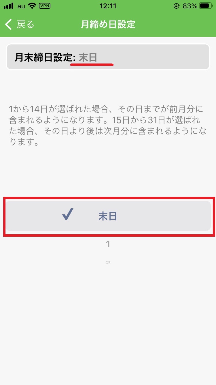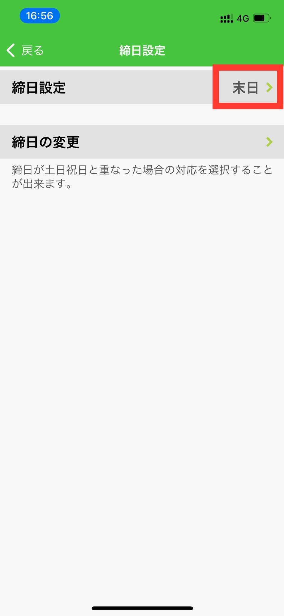 4.「締日設定 >」から締日の設定ができます。