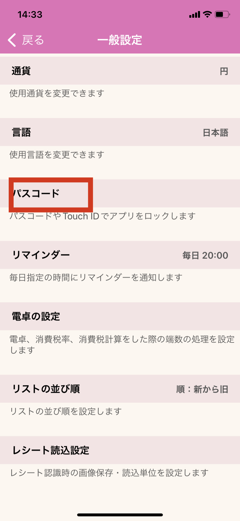 3.「パスコード」を押します。