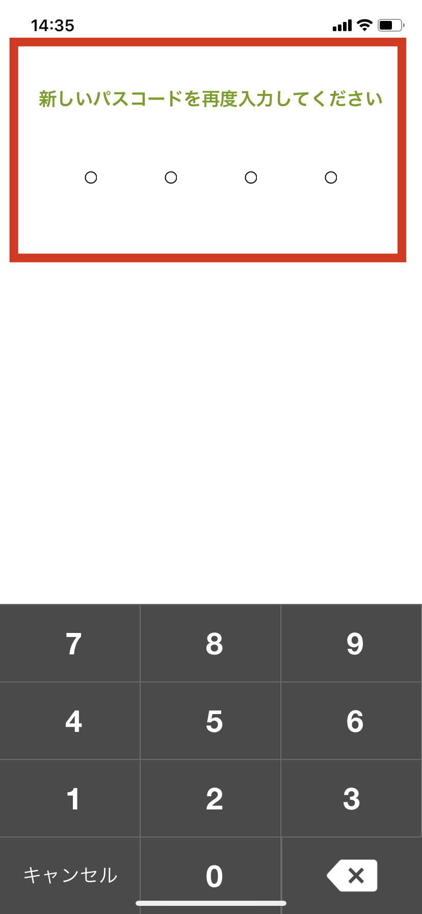 →入力すると、パスコードが解除されます。再度、「パスコード設定」にて新しいパスコードの設定を行ってください。
