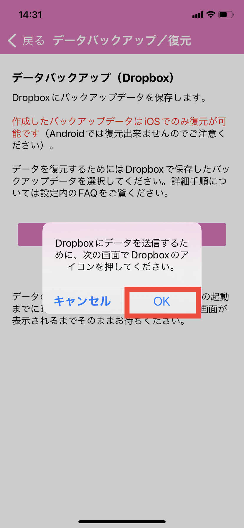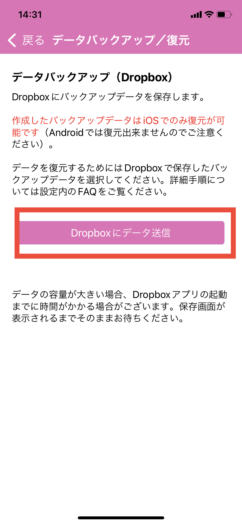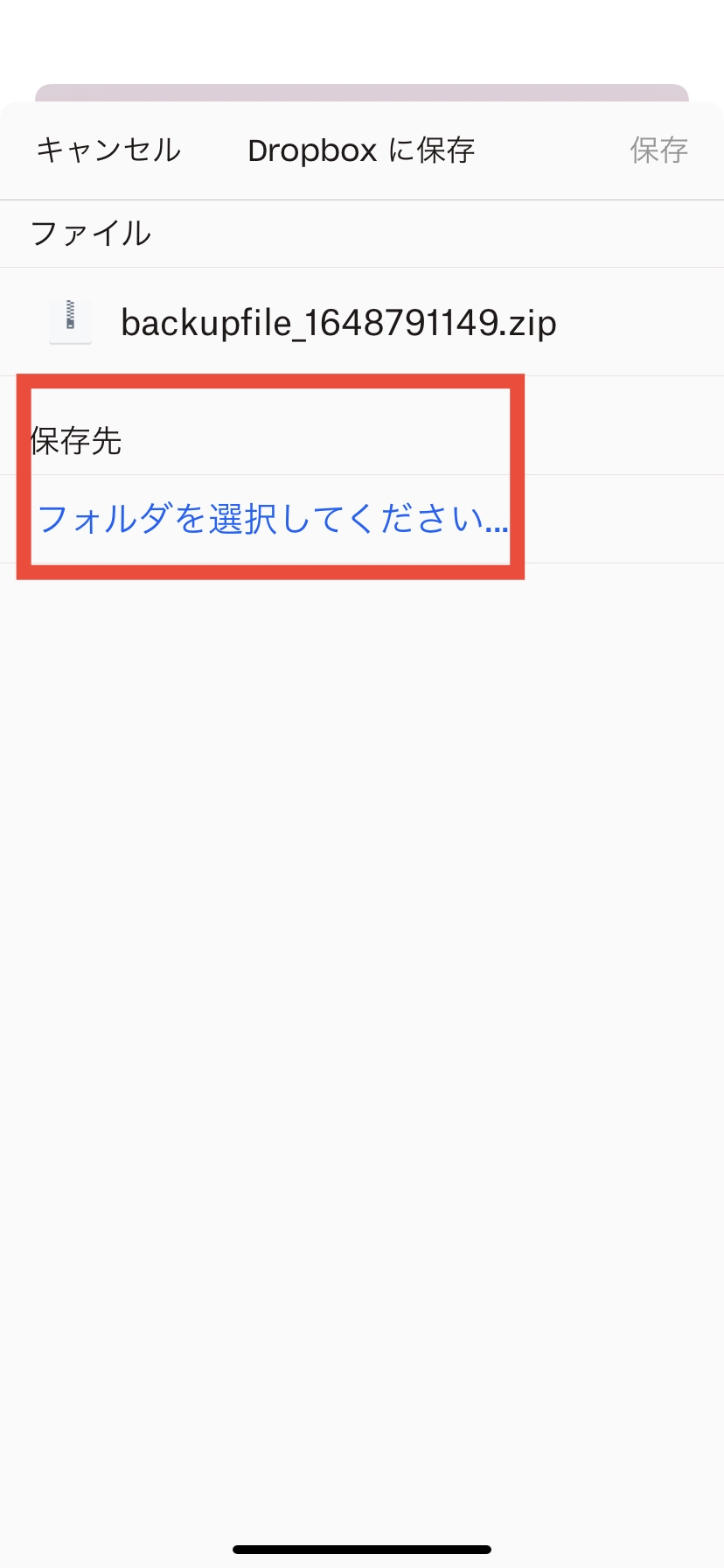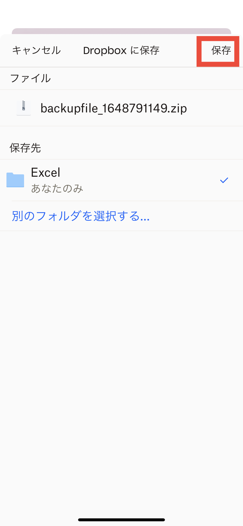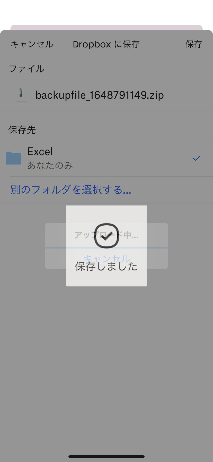 【Dropboxでのバックアップデータ保存方法(機種変更前の端末での操作)】