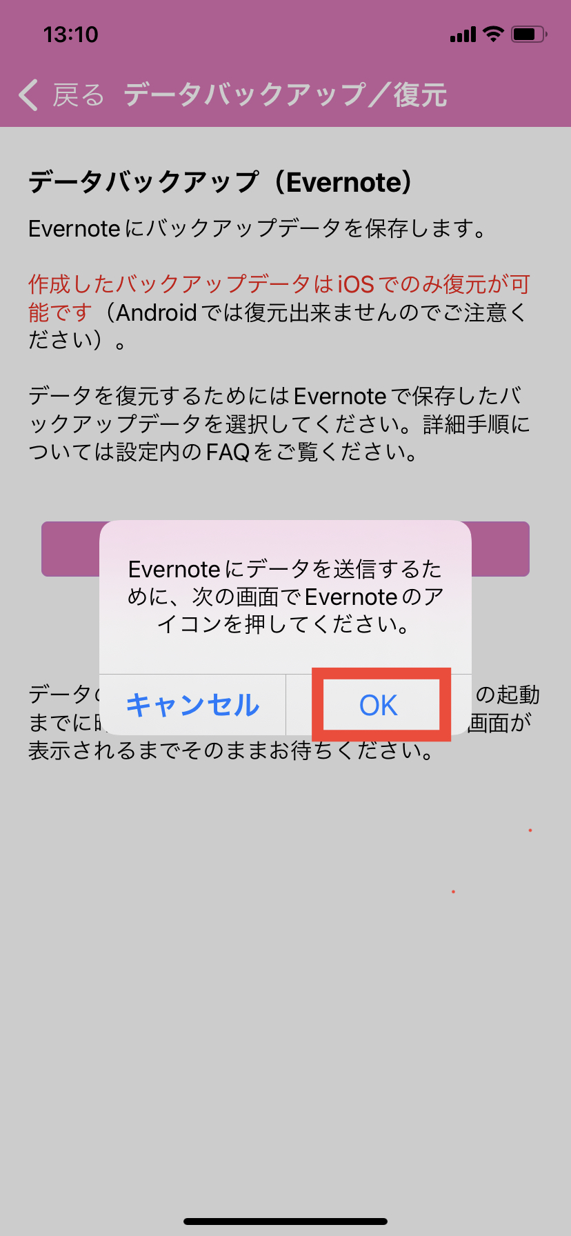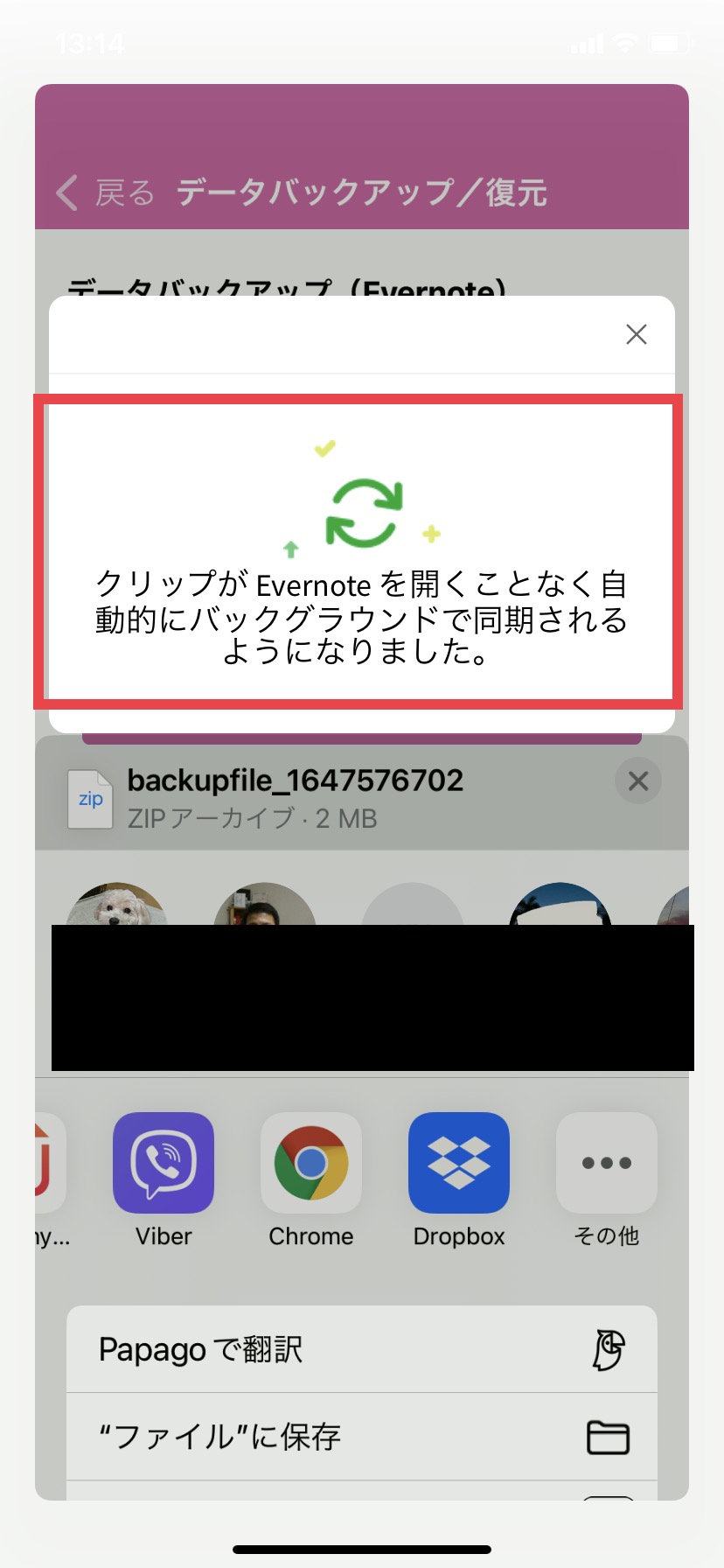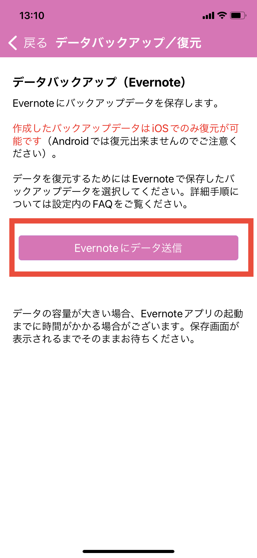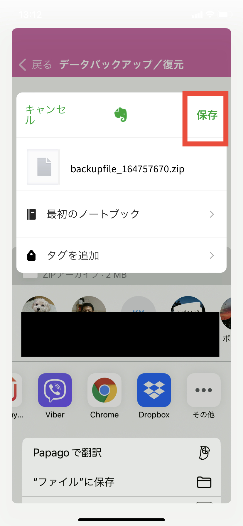 【Evernoteでのバックアップデータ保存方法(機種変更前の端末での操作)】
