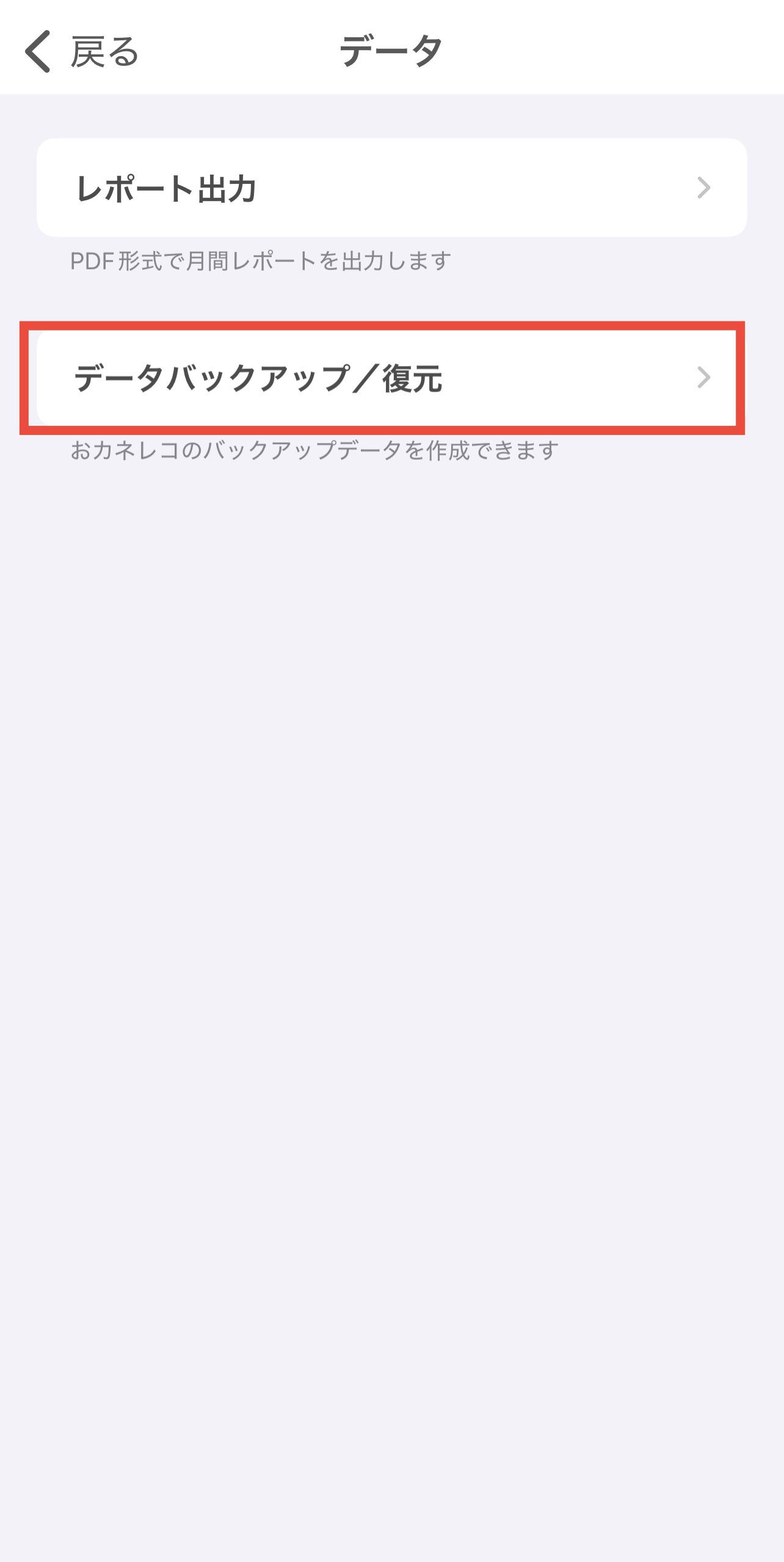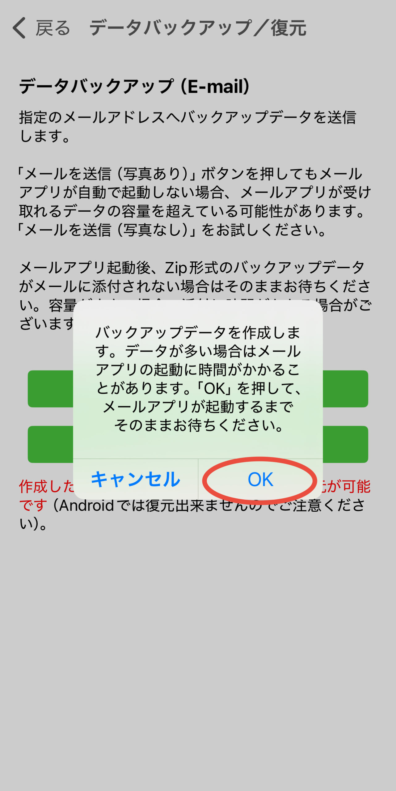 保存したバックアップデータは同じOSのおカネレコでのみ復元が可能です。