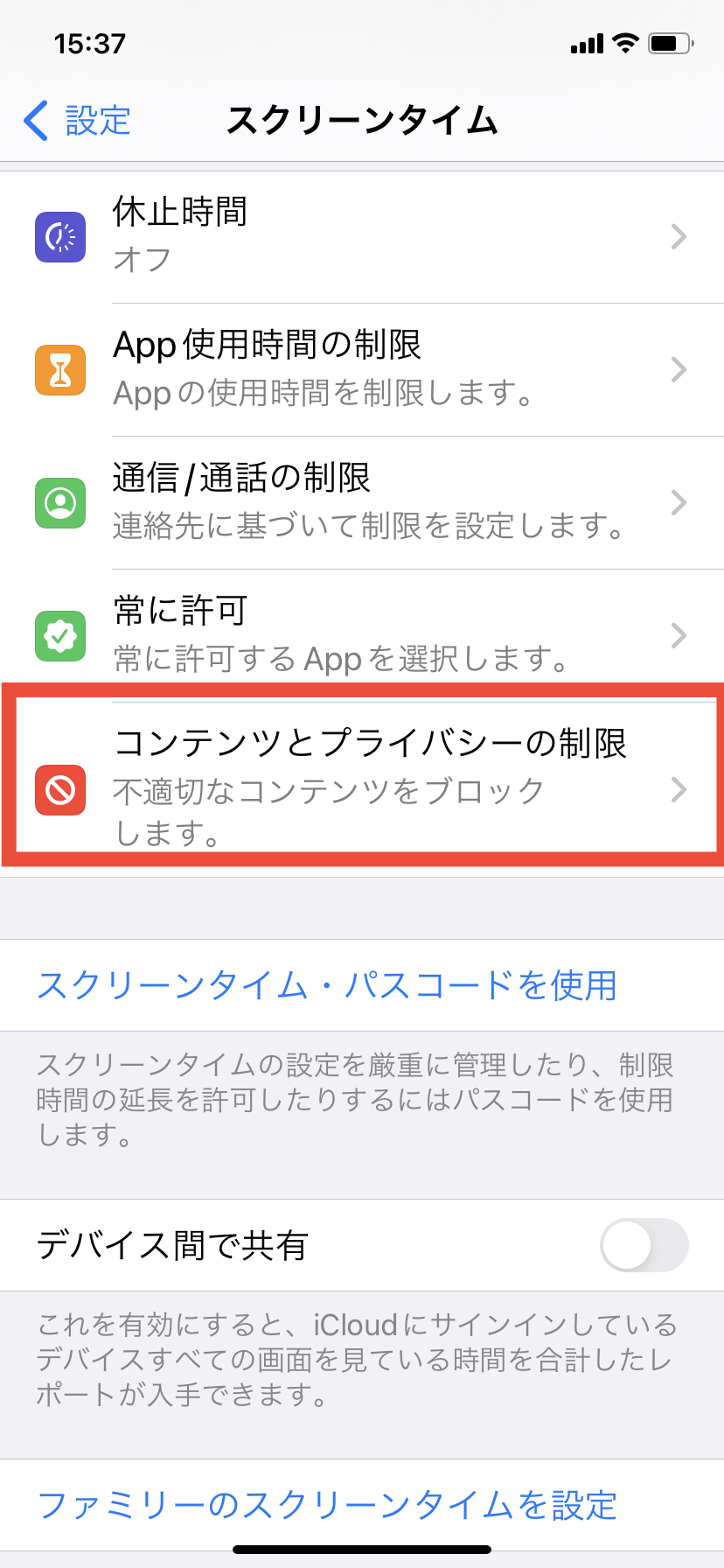 3. 「機能制限」が「オフ」になっているかご確認ください。