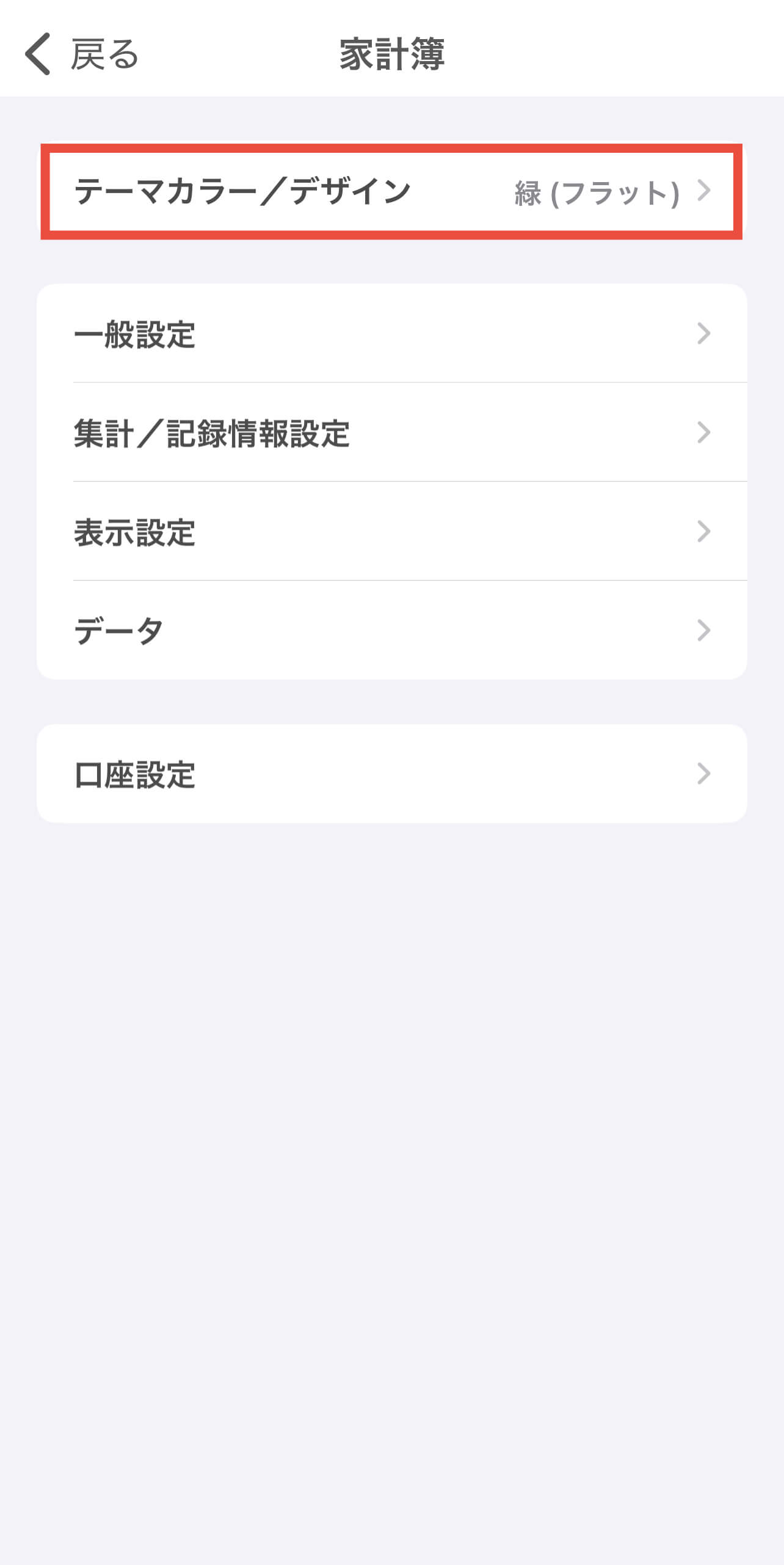 4.「テーマカラー/デザイン」を押します。