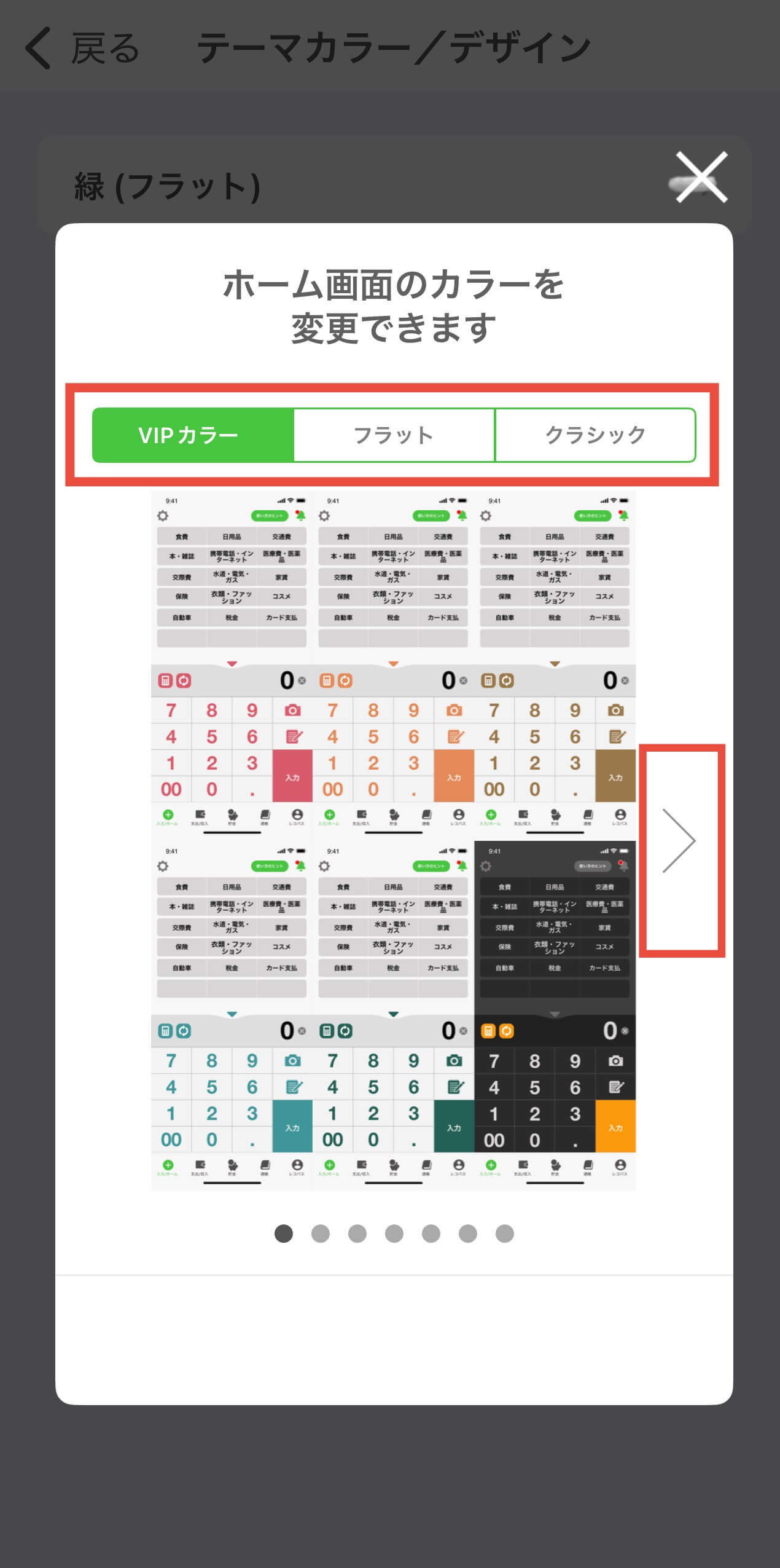 おカネレコでは6色のテーマカラーと2つのデザインから選択いただけます。