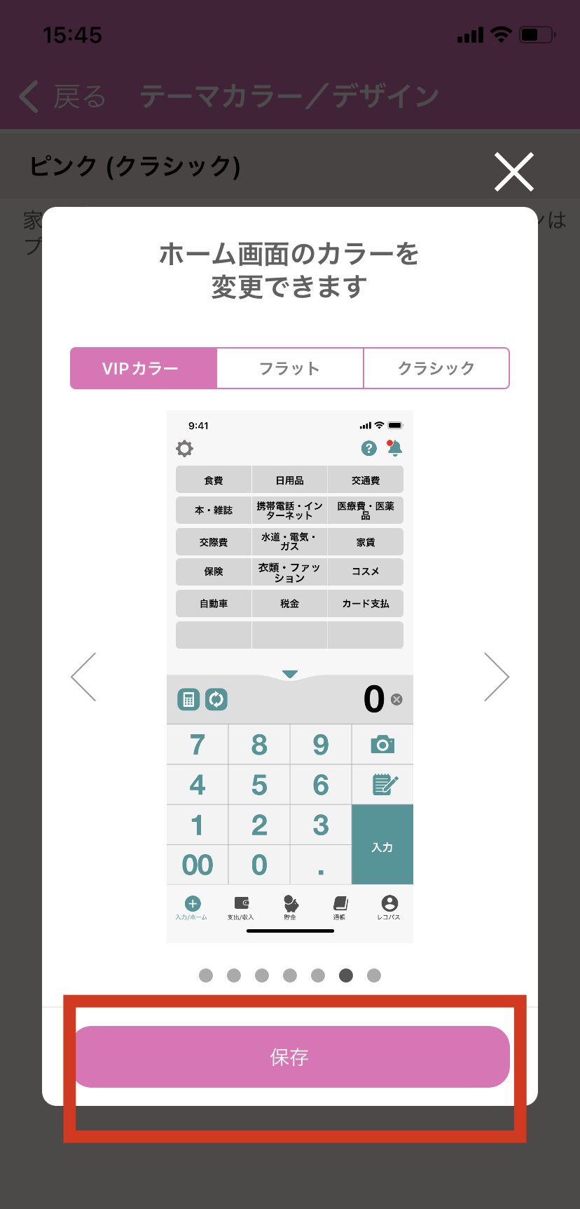 8. 好きなデザイン、カラーを選択の上、「保存」を押します。