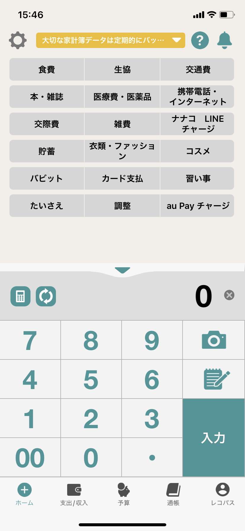 3. 「家計簿」を押します。
