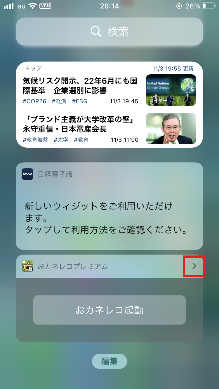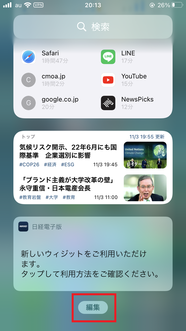 2.下記のような画面(ウィジェット)が表示されましたら、画面を一番下までスクロールし「編集」を押します。