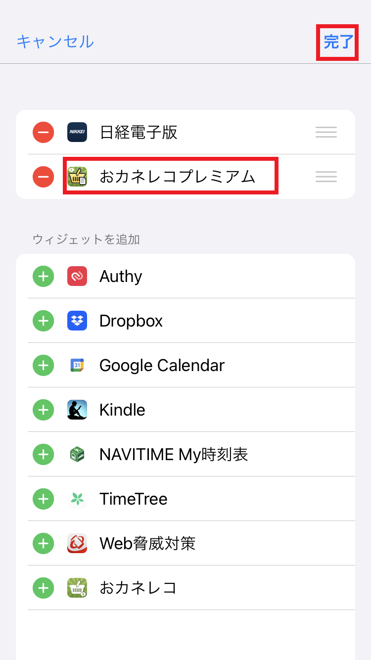 5.画面上部にアプリが追加されるので、「完了」を押します。