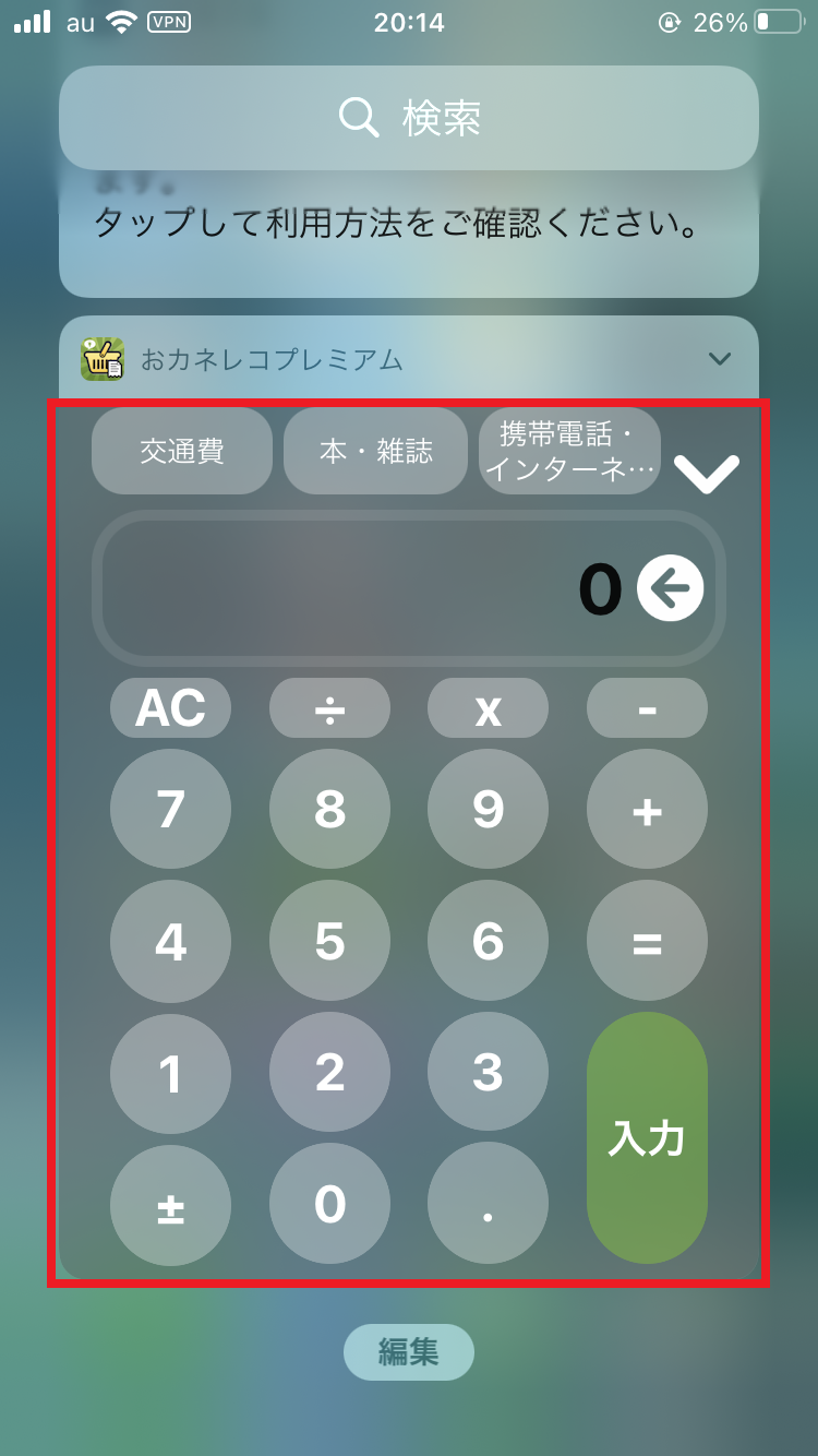 iPhoneの「ウィジェット」機能をご利用いただくと、ロック画面でもカテゴリーと金額をご入力いただくことが可能です。設定方法は下記をご覧ください。