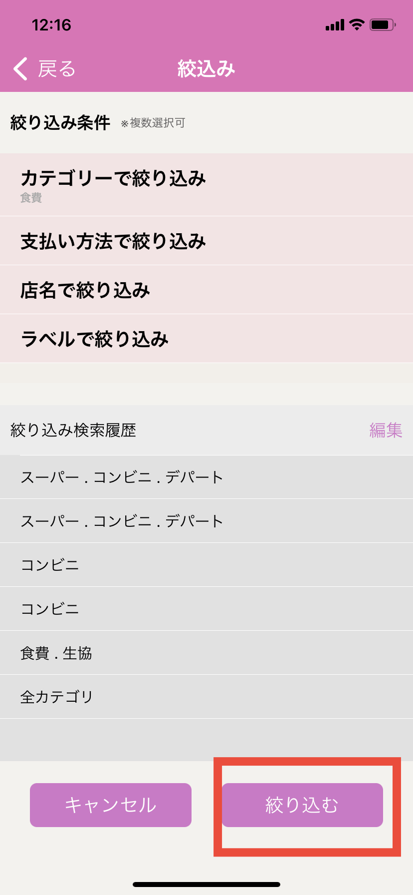 7.絞込み画面に戻りますので右下「絞り込む」を押します。