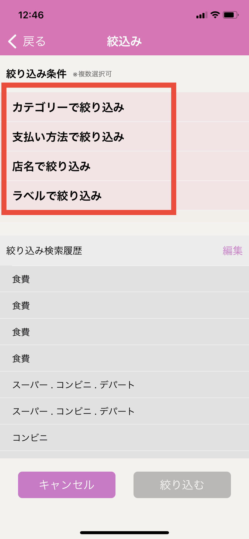 おカネレコには絞込み機能があります。