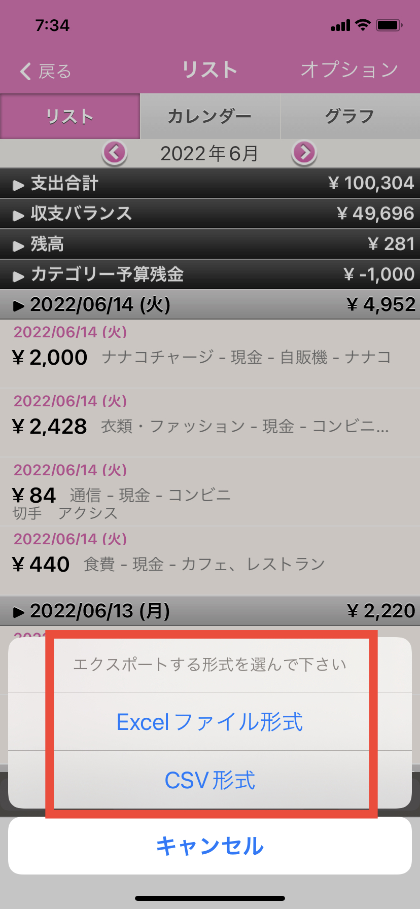 1日分の各カテゴリー出費額を1月分まとめた「エクセル家計簿」かどちらか選択します。