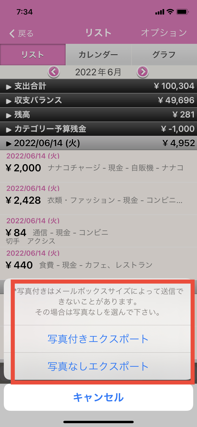 8. 「写真付きエクスポート」または「写真なしエクスポート」を選択します。