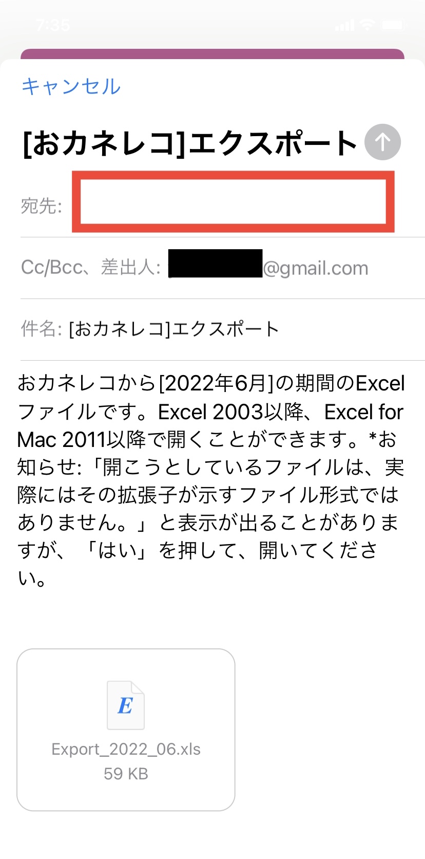 10. パソコンでメールを受信し、添付されているExcelファイルをご確認ください。