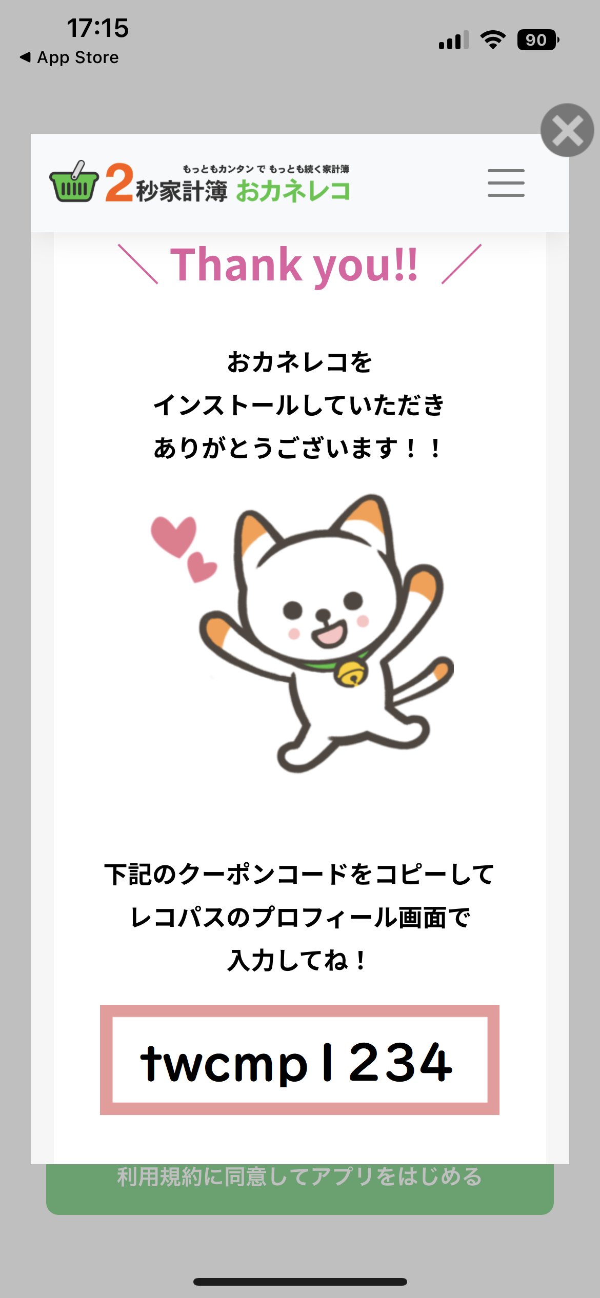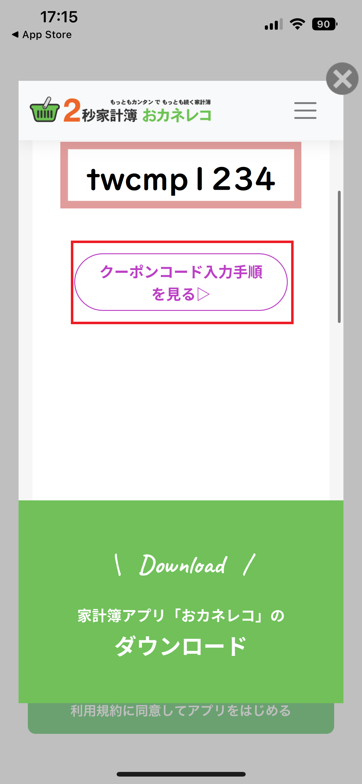 おカネレコアプリのインストールが完了しましたら、以下の手順でクーポンコードの取得をお試しください。